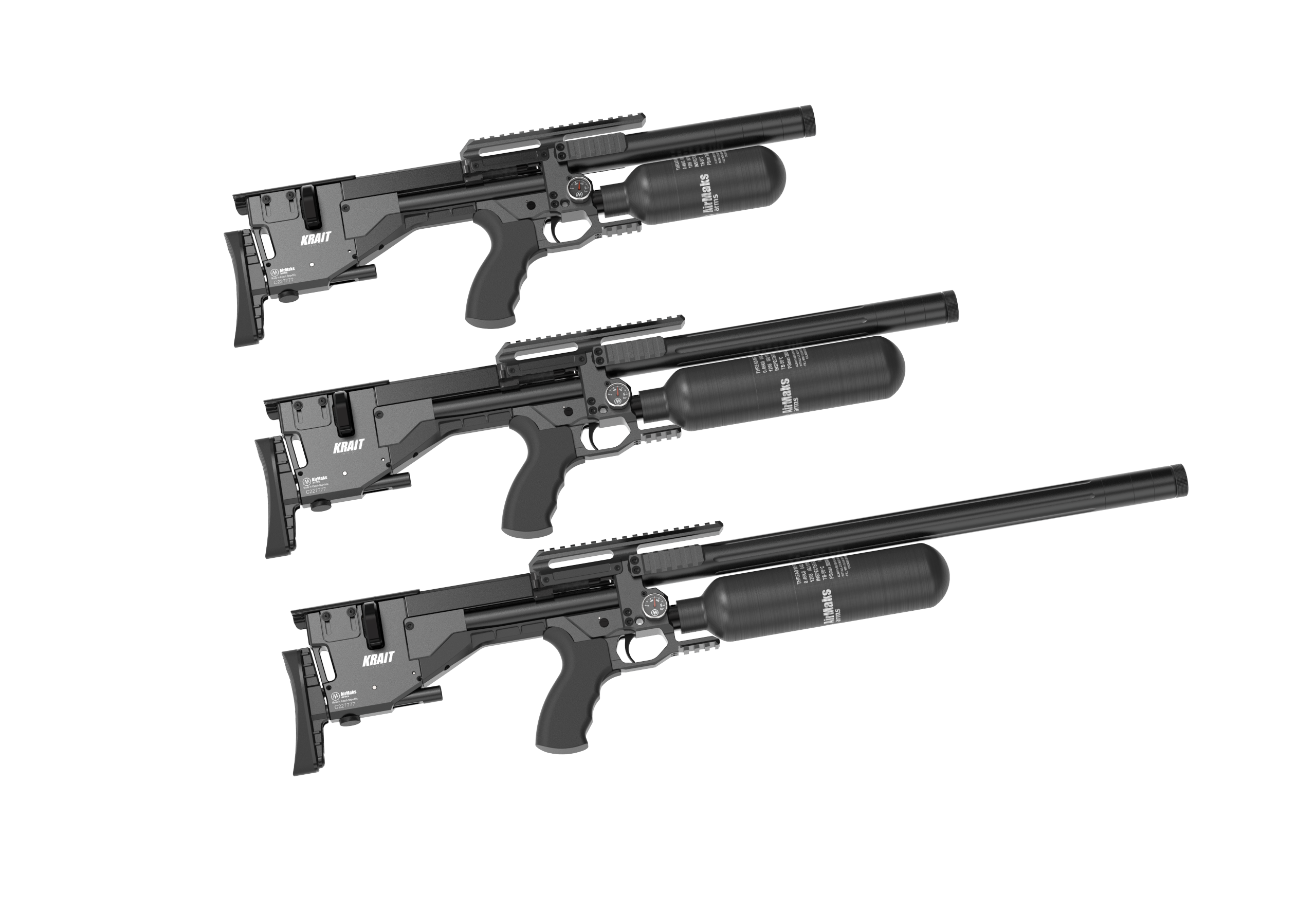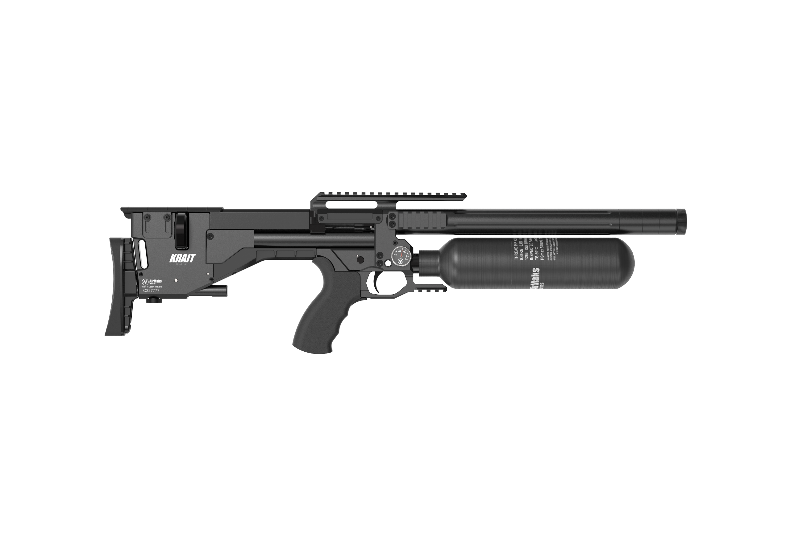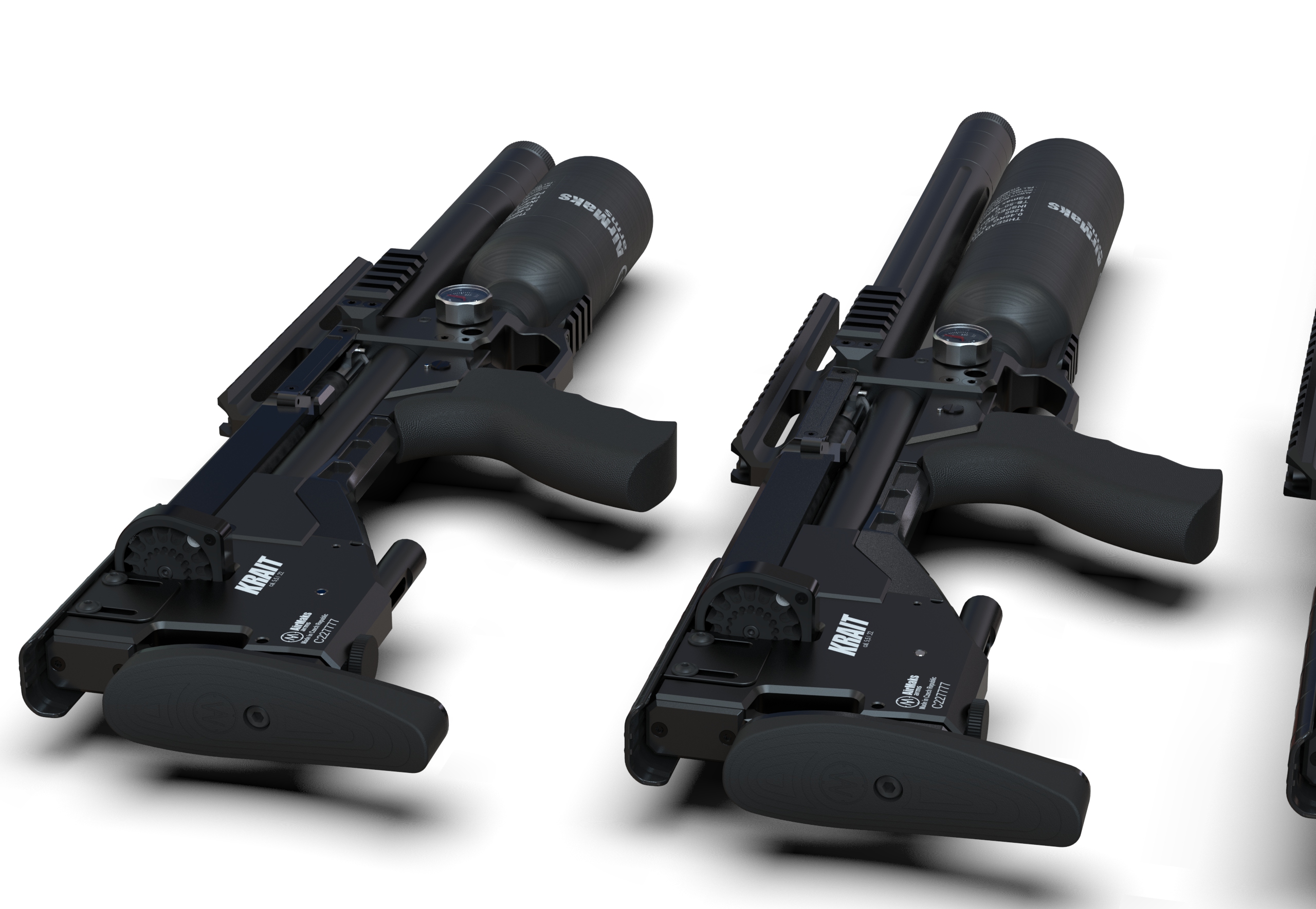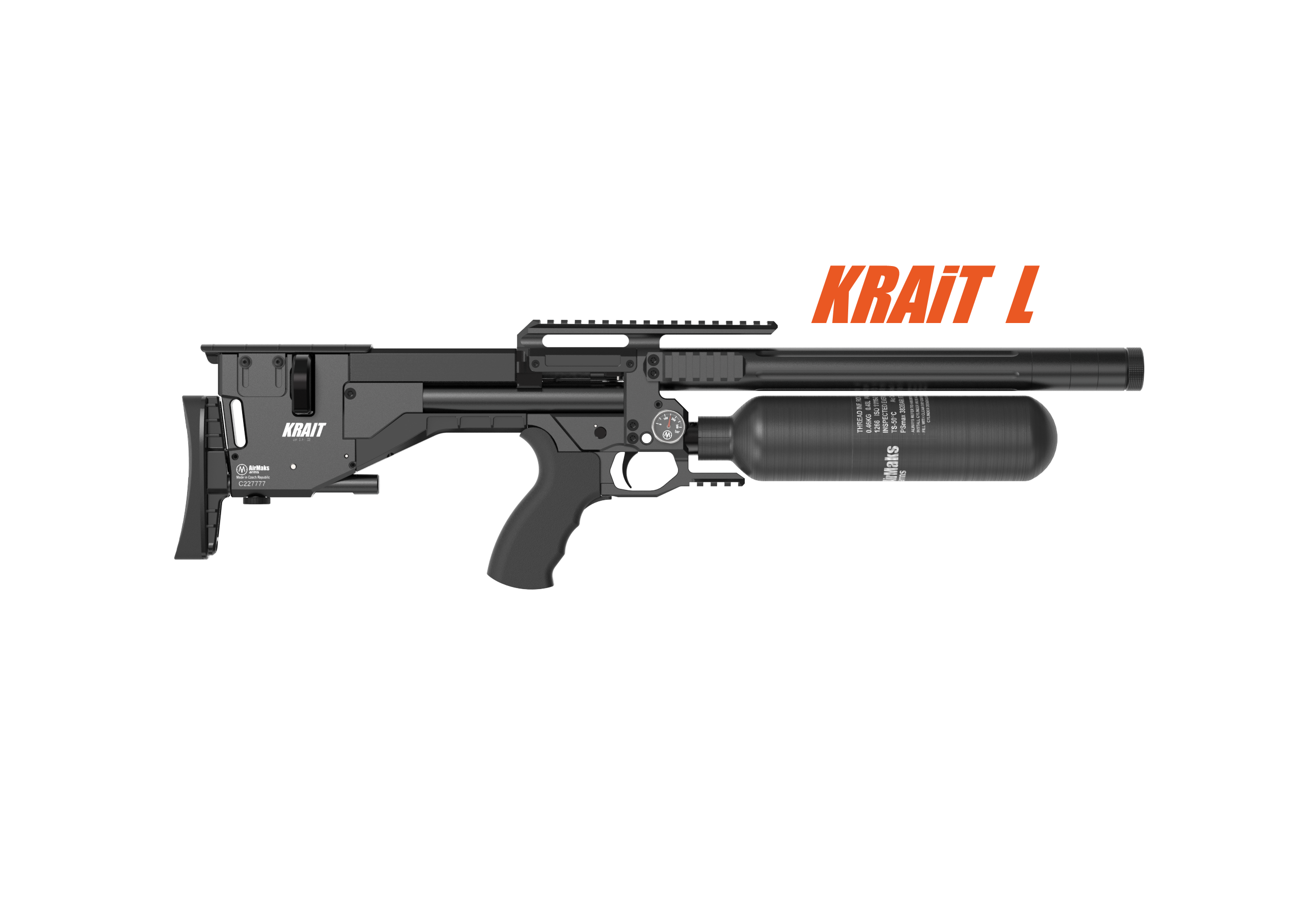 AirMaks Krait L różni się od standardowej wersji wydłużoną lufą i bardziej wybrzuszonym magazynkiem. Nadal jednak zachowuje bardzo kompaktowe wymiary i stosunkowo komfortową wagę. Długość całkowita broni nie przekracza 705 mm, a jej waga wynosi 2,8 kg.