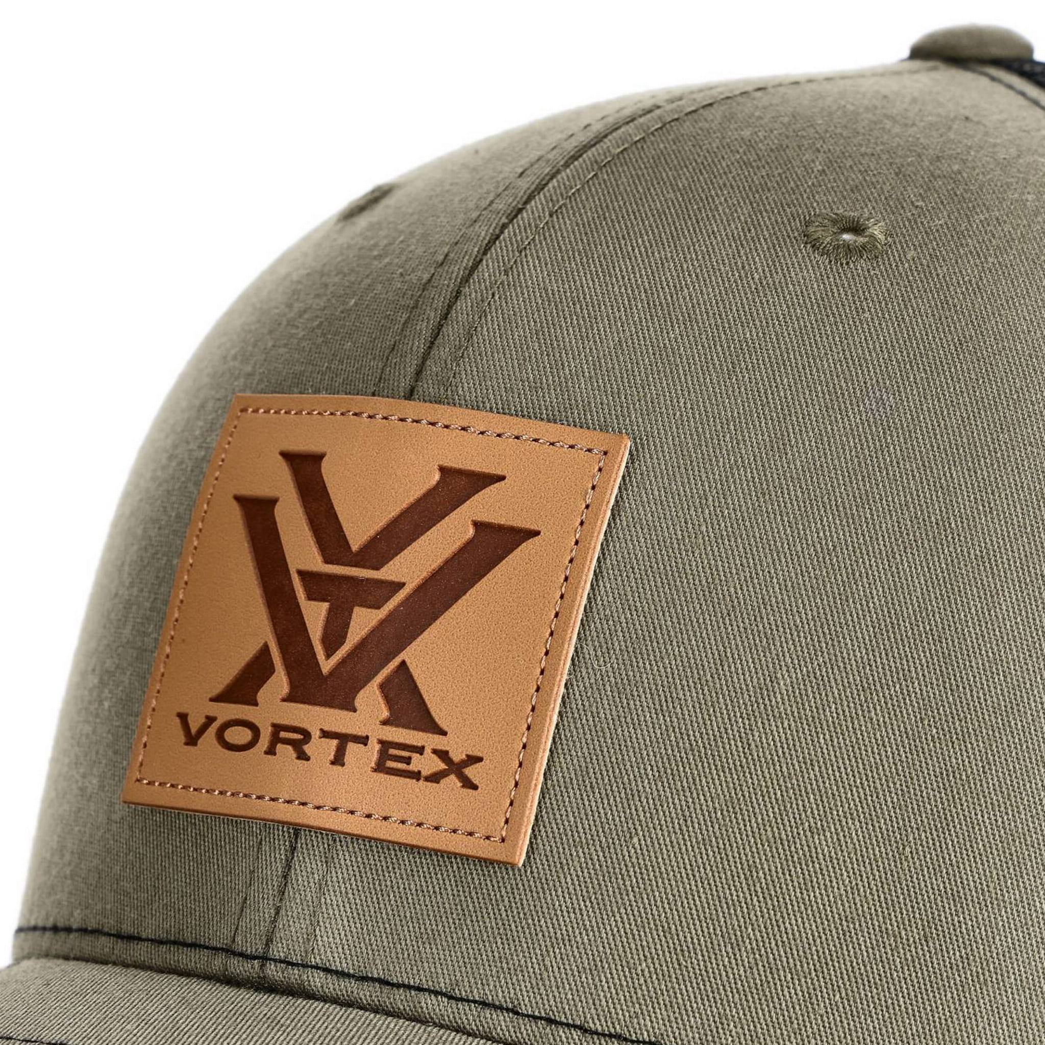 Na przodzie naszyto skórzaną wstawkę z logo Vortex. Szeroki daszek chroni przed słońcem i deszczem. Dzięki tylnej regulacji czapka ma uniwersalny rozmiar i pasuje praktycznie na każdą wielkość głowy.