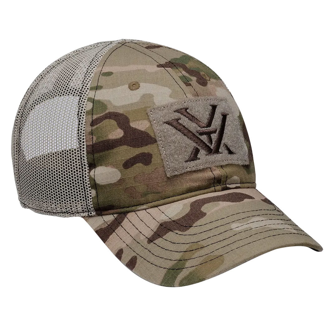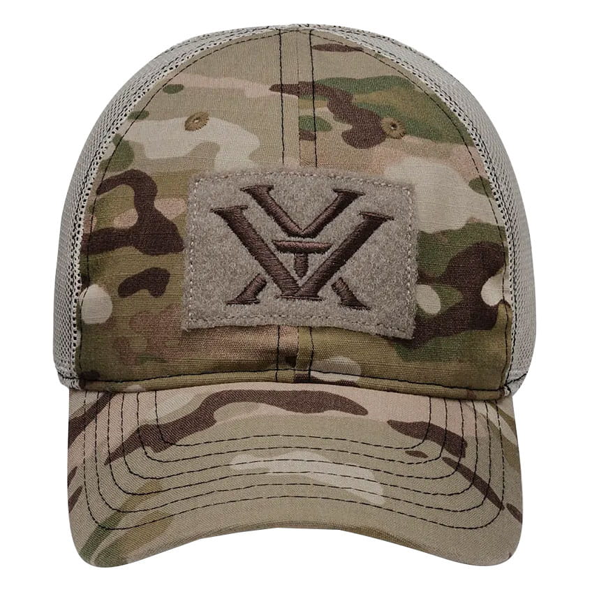 Vortex Counterforce camo to baseballowa czapka myśliwska z logotypem Vortex. Przedni panel czapki oraz daszek wykonany jest z dobrego gatunku tkaniny w kamuflowanym designie. Tył i boki czapki są wykonane z przewiewnej siateczki, co czyni czapkę doskonałą na ciepłe pory roku.