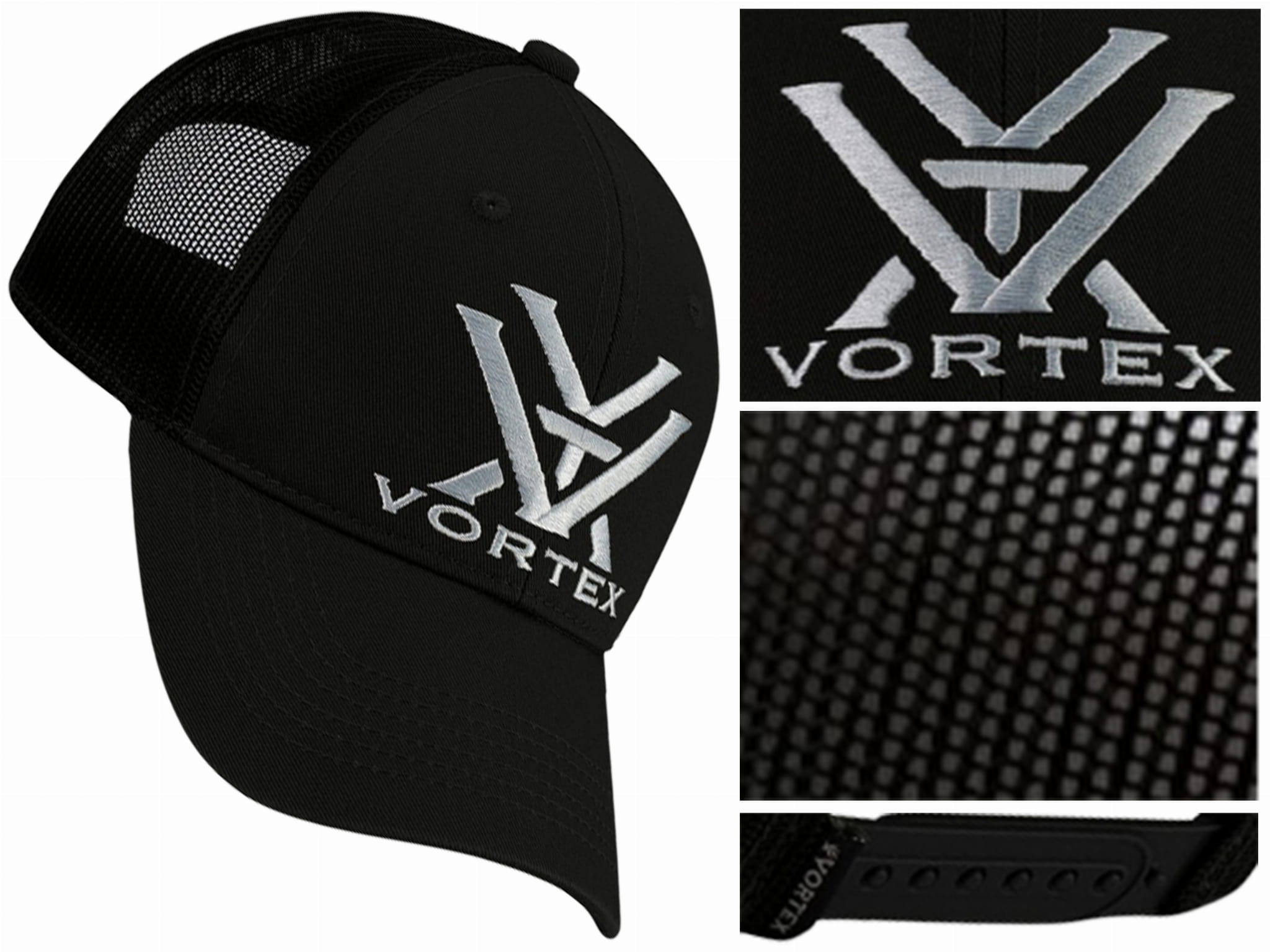 Na przodzie naniesiono komputerowy haft z białym logo Vortex. Szeroki daszek chroni przed słońcem i deszczem. Dzięki tylnej regulacji czapka ma uniwersalny rozmiar i pasuje praktycznie na każdą wielkość głowy.