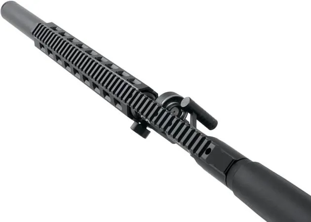 Solidna osłona lufy z pełnowymiarową szyną montażową: FX DRS Tactical 600 wyposażony jest w trwałą osłonę lufy z pełnowymiarową szyną Weaver/Picatinny, umożliwiającą montaż optyki oraz dodatkowych akcesoriów. Dodatkowo, spód karabinu zdobi pełnowymiarowa szyna Arca-Swiss, a liczne otwory montażowe umożliwiają szybki montaż QD sling swivels.
