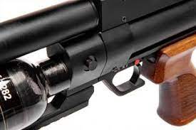 Wiatrówka już w standardzie jest zaopatrzona w regulator ciśnienia. Właśnie ten utrzymuje stałe ciśnienie, co przekłada się na stabilną pracę i początkową prędkość wylotową śrutu. Zresztą kalibrgun kładzie duży nacisk na parametry strzału. Przełomowym krokiem do przodu jest usprawnienie pracy dźwigni przeładowania, po czym cykl przeładowania stał się bardziej wygodny i szybszy.