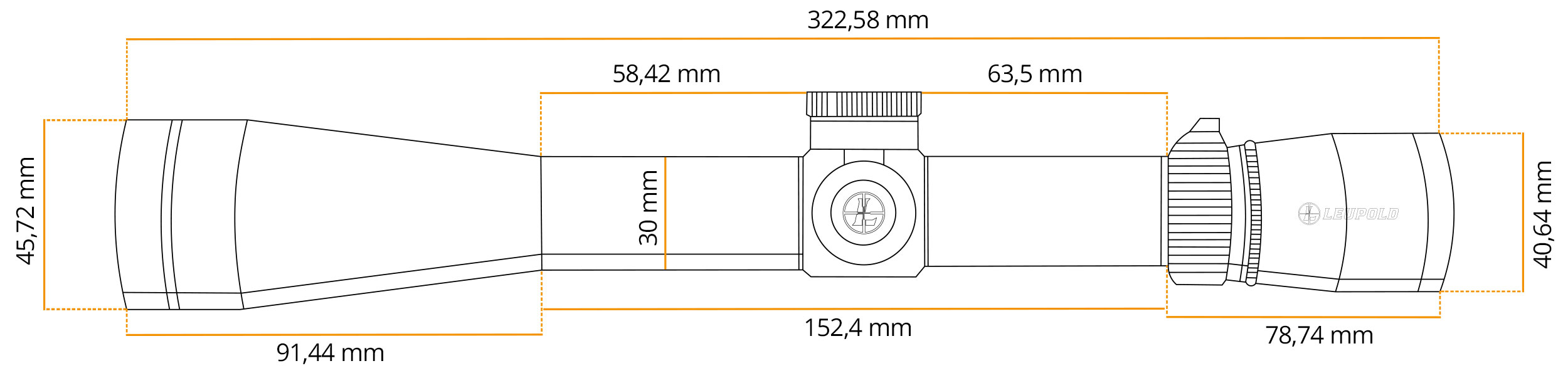 Luneta ma aluminiowy (6061-T6) tubus o średnicy 30 mm, który w odróżnieniu od wersji calowej zapewnia większy zakres regulacji ustawień siatki celowniczej wynoszący aż 113 MOA w pionie i poziomie.