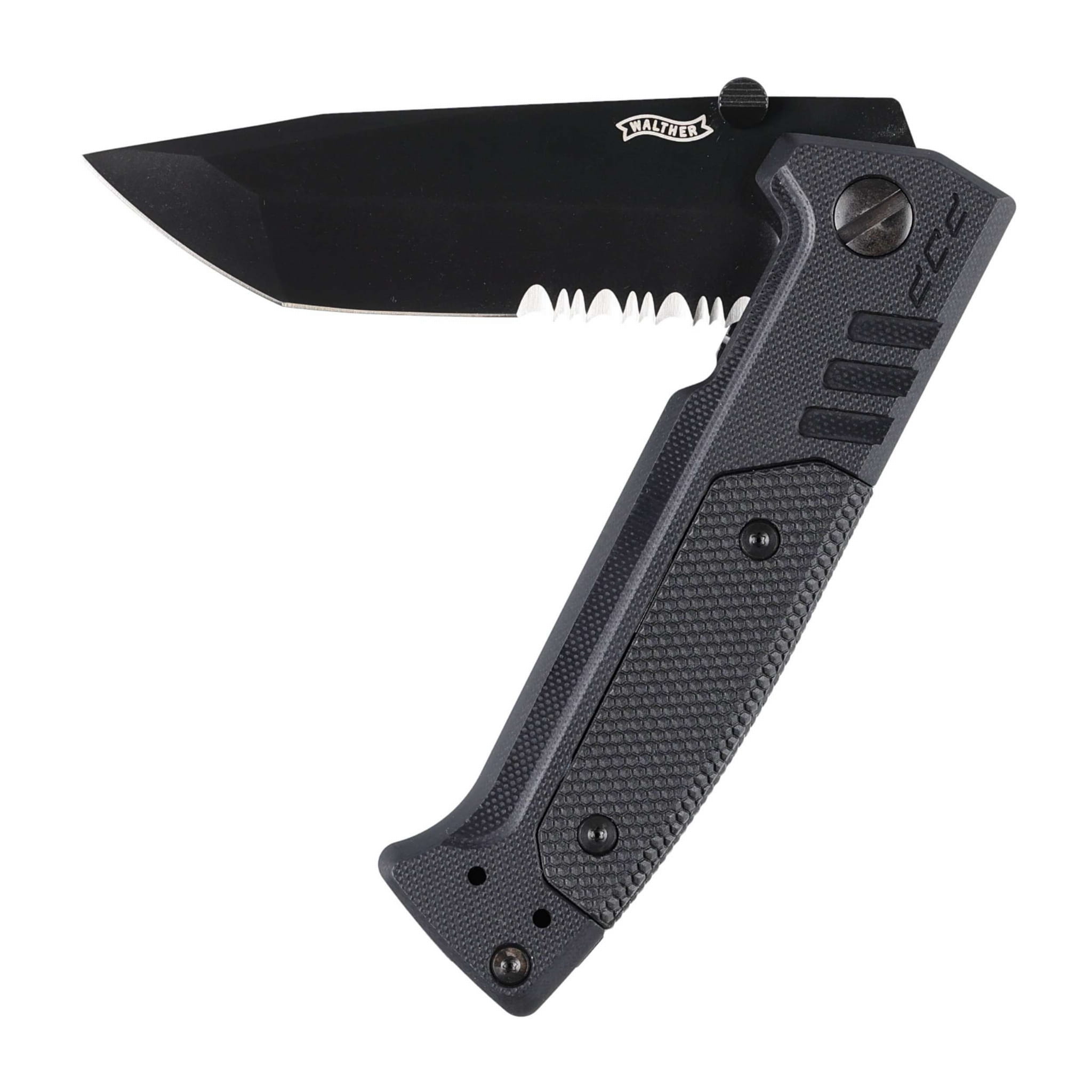 Nóż Walther PDP Tanto czarny, ząbkowany, składany