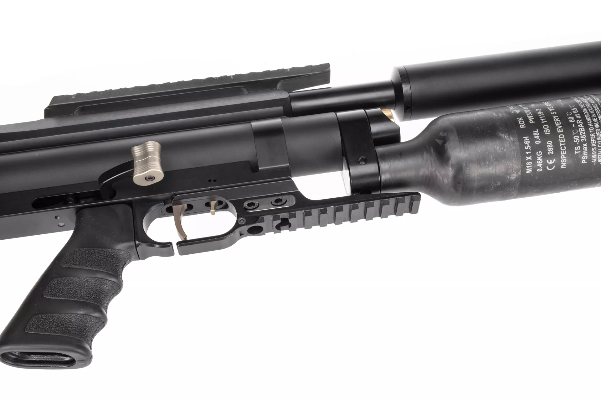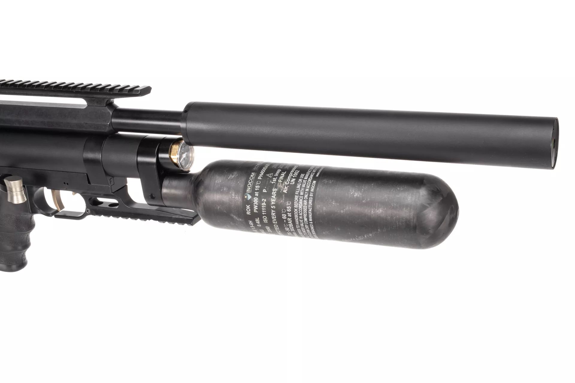 Kevlarowy kartusz ma pojemność 480cc, a wraz z Power Plenem daje to łączną pojemność powietrza 675cc. Maksymalne ciśnienie napełniania wynosi 300 barów. Regulator ciśnienia nie uniknął modyfikacji w celu uzyskania najbardziej optymalnych osiągów.