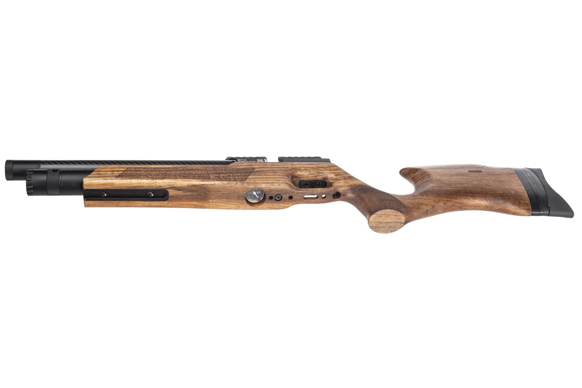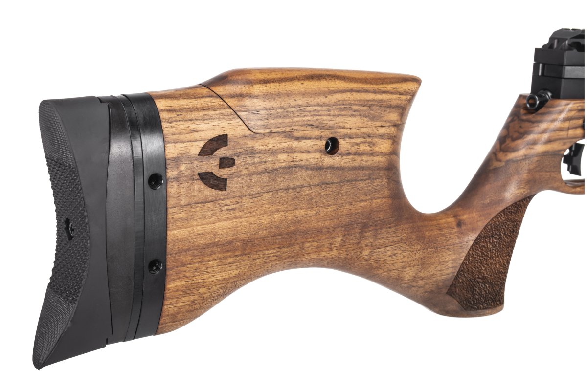 I nie jest to byle jaka kolba - za jej produkcją stoi renomowana czeska firma KLINSKY, która doprowadziła ją do perfekcji w najdrobniejszych szczegółach. Wybrane drewno ma unikalną teksturę, przez co każda wiatrówka jest na swój sposób unikalna. Do montażu dwójnogu lub trójnogu można użyć klasycznej dolnej szyny UIT Anschütz. Wybrane fragmenty powierzchni na łożu i rękojeści mają chropowate wykończenie, a prawdziwym smaczkiem jest symetryczna baka policzkowa z regulacją wysokości oraz gumowa stopka z regulacją wysokości, długości i boku. Do przeprowadzenia regulacji wystarczy jeden klucz imbusowy H4. W porównaniu z oryginalną wersją z kolbą aluminiową i rozszerzoną bazą montażową Arca-Swiss, wersja Walnut oferuje przyjemnie niską wagę, co szczególnie docenią myśliwi podczas długich wypraw.
