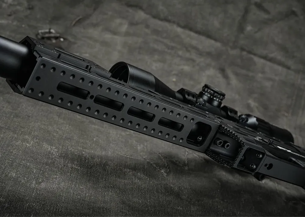 Zbiornik PCP nad lufą – pojemność 310 cc, redukuje gabaryty broni, poprawiając ergonomię i transport.
