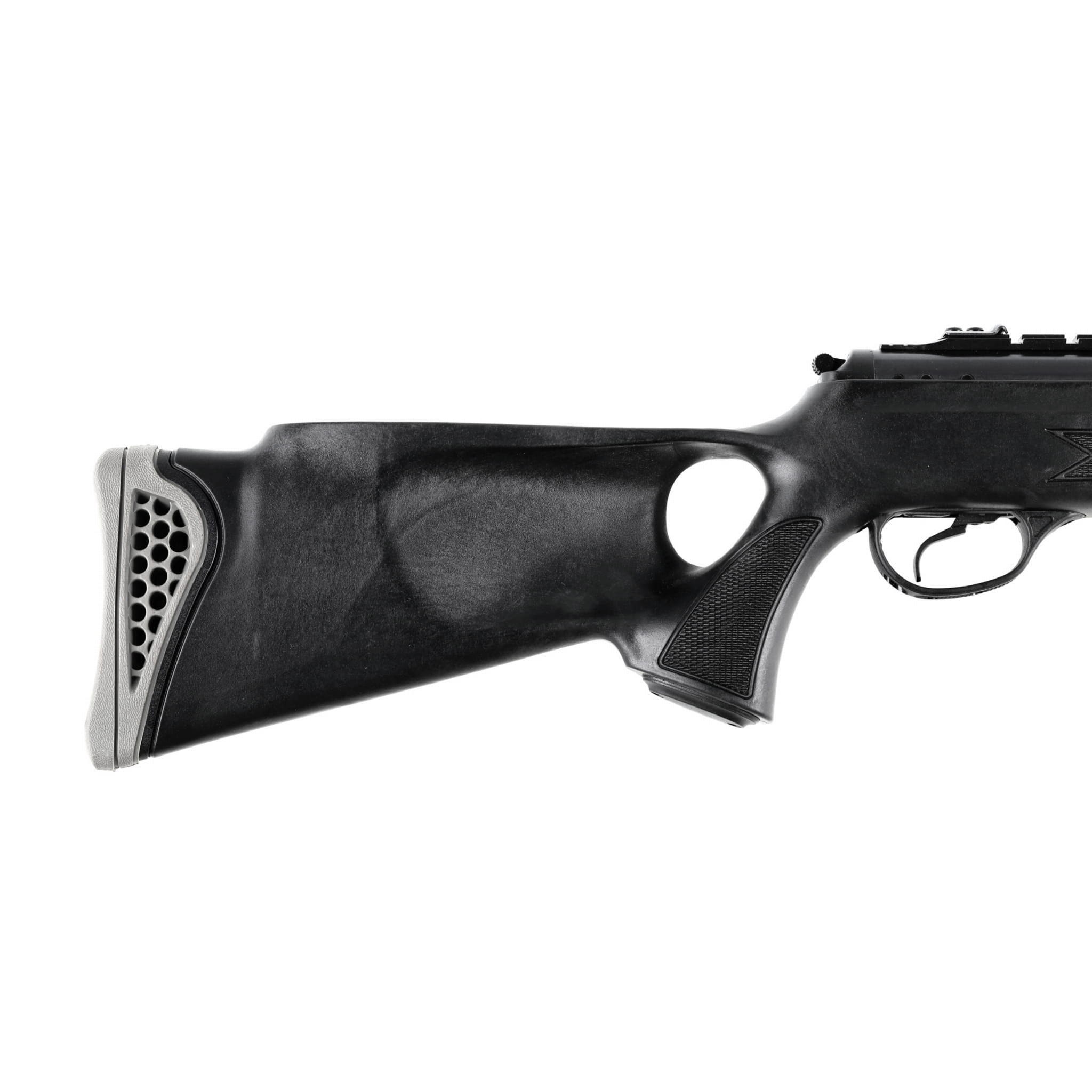 Atutem tego modelu jest również jego łatwa konserwacja, która nie wymaga w zasadzie niczego poza utrzymaniem ogólnej czystości sprzętu. Do czyszczenia warto stosować olejek silikonowy, który dodatkowo zabezpieczy elementy polimerowe i metalowe. Za odporność osady karabinka odpowiada wykorzystanie wytrzymałego polimeru. Kolba typu Thumbhole ma chwyt pistoletowy z otworem na kciuk, co korzystnie wpływa na kontrolę nad karabinkiem. Na chwycie zastosowano moletowanie poprawiające przyczepność dłoni. Karabinek ładowany jest poprzez tradycyjne „łamanie lufy” rozwiązanie szybkie, proste i wygodne. Komfort strzelania zwiększa polimerowa atrapa tłumika o antypoślizgowym frezowaniu, która ułatwia proces napinania sprężyny. Wiatrówka Optima by Hatsan 125 STG TH Sport 6,35 mm ma automatyczny bezpiecznik aktywowany po złamaniu lufy, dlatego nie musisz martwić się o niekontrolowane wystrzały.