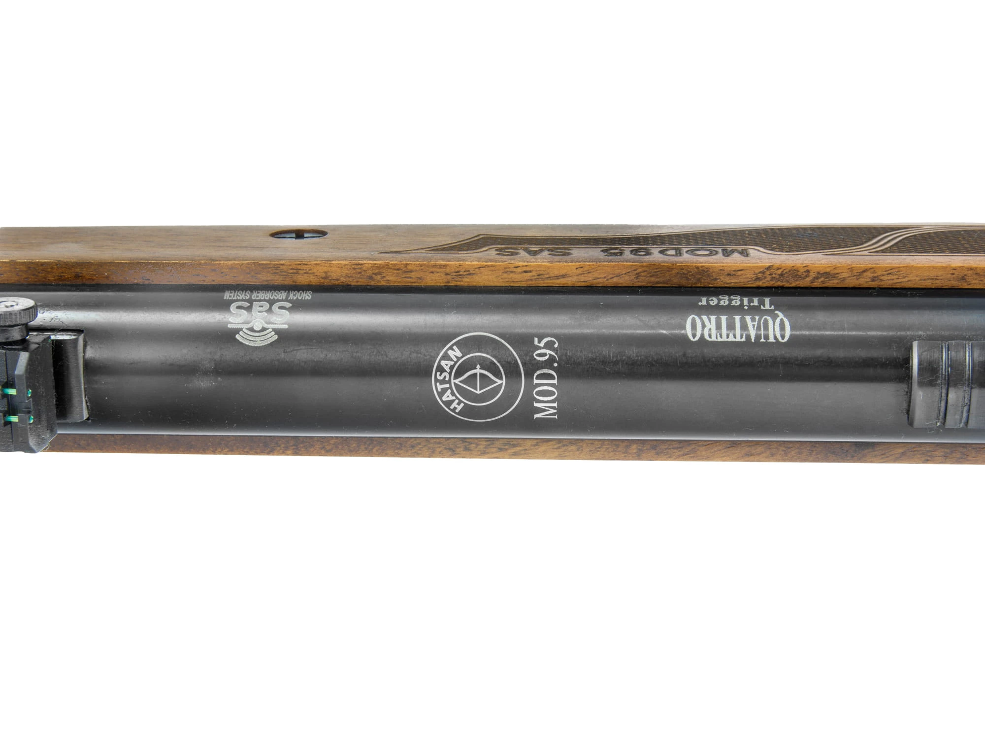 Optima by Hatsan 95 STG Vortex 4,5 mm to jeden z najbardziej popularnych karabinków sprężynowych na rynku, w którym zastosowano elegancką osadę z drewna orzechowego, sprężynę gazową Vortex, regulowany mechanizm spustowy Quattro oraz system redukcji odrzutu SAS.