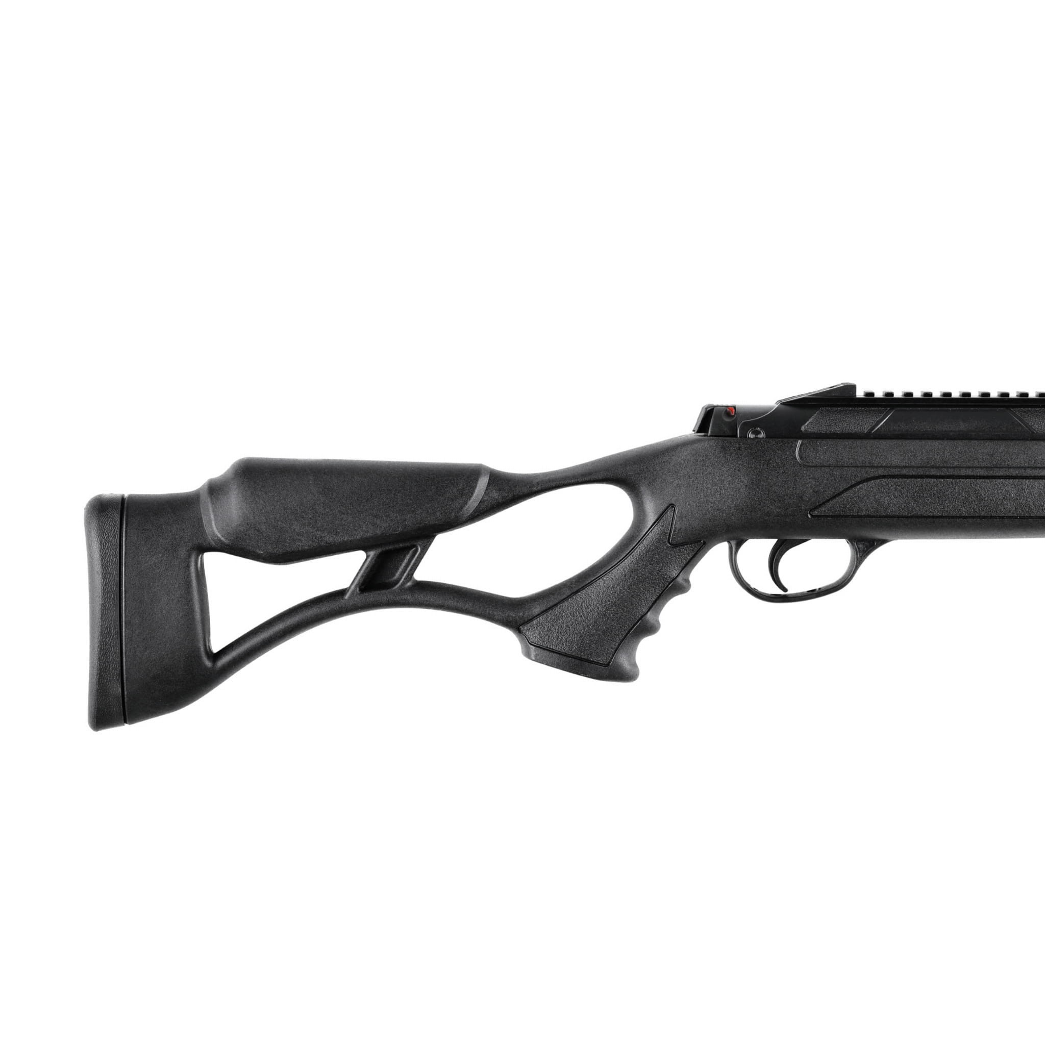 Polimerowa osada typu Thumb-hole, posiada wygodny chwyt pistoletowy oraz przestrzeń na kciuk zwiększając komfort, oraz kontrolę nad karabinkiem. Symetryczna kolba Monte Carlo z wysoką baką policzkową umożliwia wygodne strzelanie osobom prawo i leworęcznym. Na przedniej części łoża oraz chwycie naniesiono estetyczne ryflowanie, która poprawia chwyt oraz design wiatrówki. Wentylowana gumowa stopka w dużym stopniu absorbuje energię wystrzału oraz tworzy stabilny punkt oparcia. Światłowodowe przyrządy celownicze TruGlo, ułatwiają i przyspieszają celowanie, zwłaszcza przy mocnym słonecznym oświetleniu. Szyna 11 mm umożliwia montaż wybranego celownika optycznego.