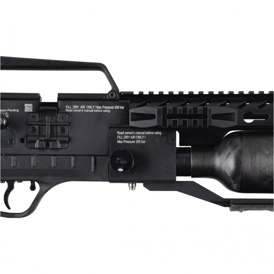 Zintegrowany cyfrowy manometr zapewnia precyzyjną kontrolę poziomu ciśnienia w kartuszu, eliminując niepewność i pomagając uniknąć niespodzianek w trakcie strzelania. Minimalny próg pracy systemu Full Auto i Semi Auto to 130 barów, co oznacza, że możesz cieszyć się pełnią funkcjonalności aż do końca energii w zasobniku.
