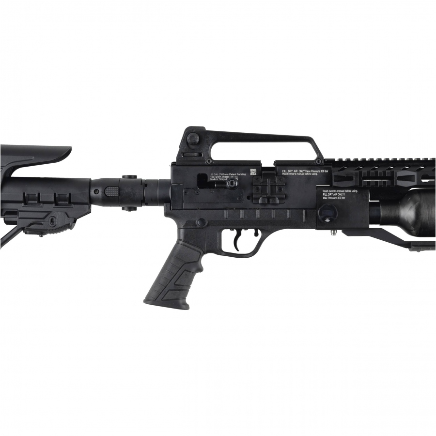 Uwaga: Oferowana wiatrówka w wersji na rynek polski, w limicie Ek<17J. Pełna funkcjonalność karabinka (strzelanie w trybie automatycznym) dostępna tylko po przywróceniu produktu do wartości nominalnych, co równocześnie powoduje także konieczność rejestracji ze względu na przekroczenie limitu obowiązującego w polskim prawie.