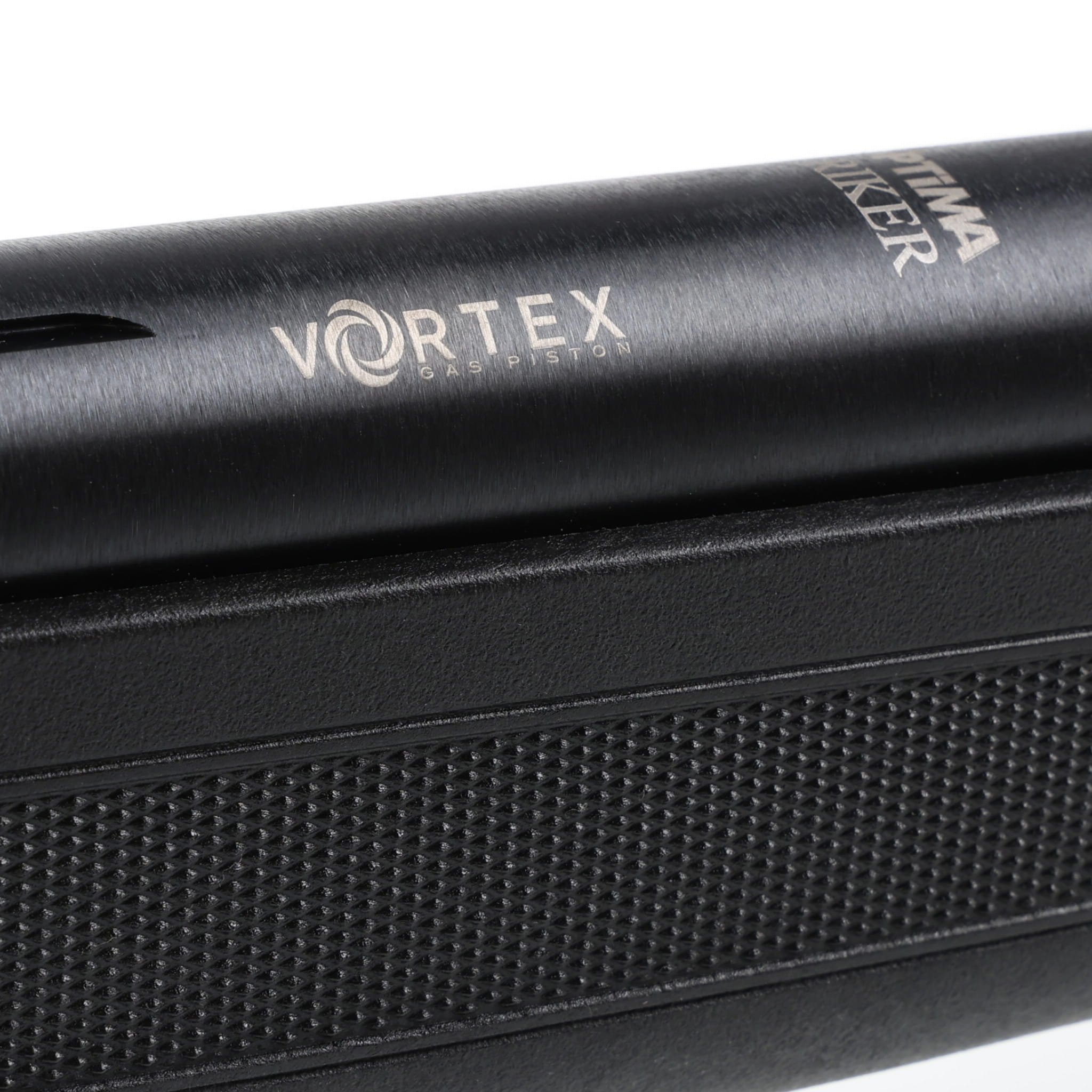 W chwili naciśnięcia spustu sprężony gaz wprawia w ruch tłok, który odpowiada na kompresję powietrza oraz wystrzelenie śrutu. Vortex zapewnia stabilną prędkość początkową śrutu oraz znacznie dłuższą żywotność układu pneumatycznego w stosunku do standardowej układu tłokowo-sprężynowego.