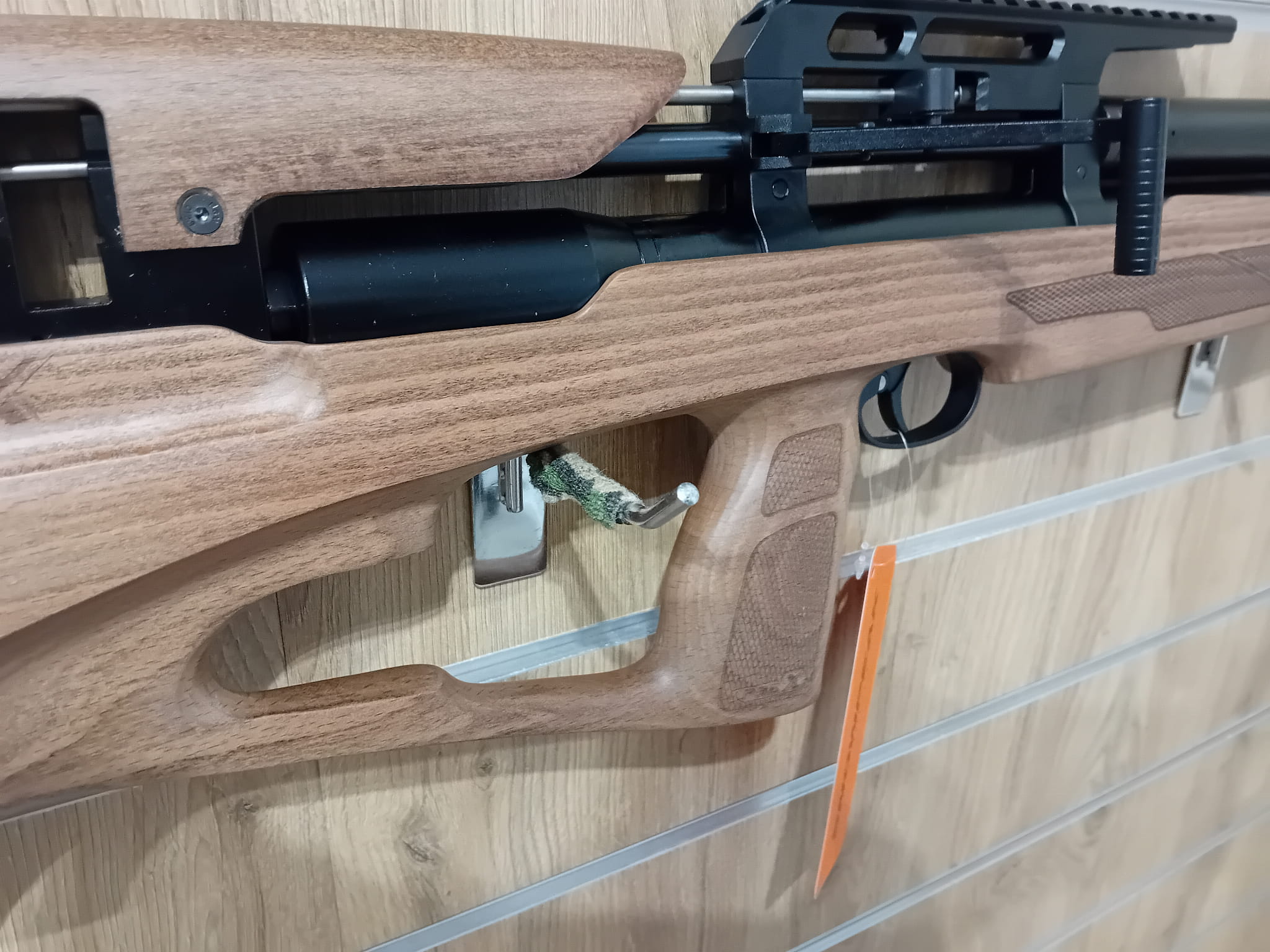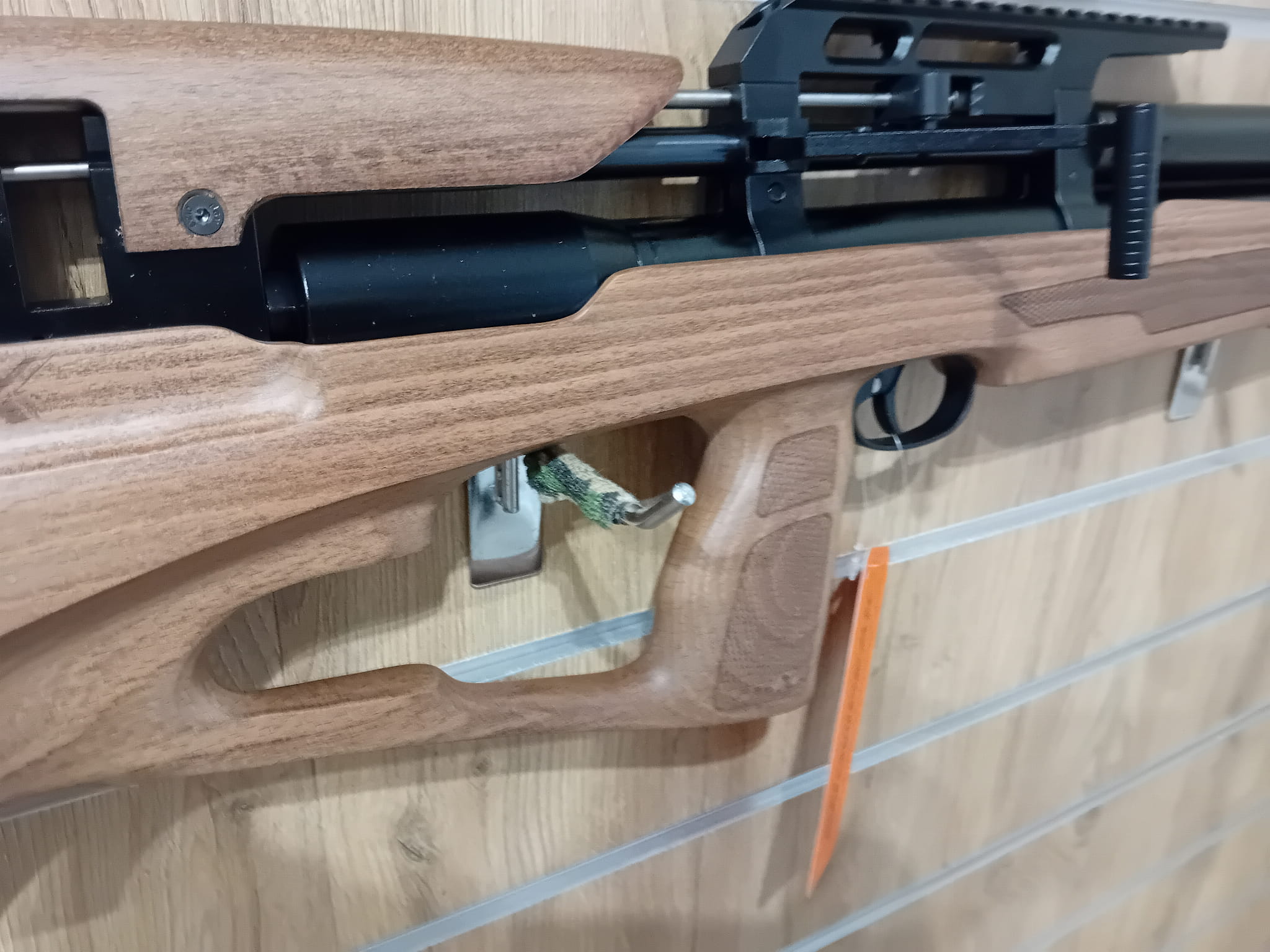 Ten model typu bullpup Snowpeak P35X ma trwałą kolbę z otworem na kciuk, wykonaną z drewna, którą można obsługiwać oburęcznie. Wygodny chwyt pistoletowy świetnie leży w dłoni, a szorstka tekstura po obu stronach zapewnia lepszy chwyt.