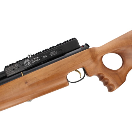SUPERNOVA RG - doskonała wiatrówka PCP firmy Hatsan Arms wyposażona w regulator ciśnienia (podaje stałe ciśnienie na zawór strzałowy oraz niweluje wahania prędkości początkowej vo). Dzięki regulatorowi ciśnienia karabin strzela powtarzalnie, a znajdujące się w kartuszu powietrze wykorzystywane jest efektywniej, większa ilość strzałów z jednego naładowania. Wiatrówka dostępna w kalibrach: .177 (4.5 mm), .22 (5.5 mm), .25 (6.35 mm).