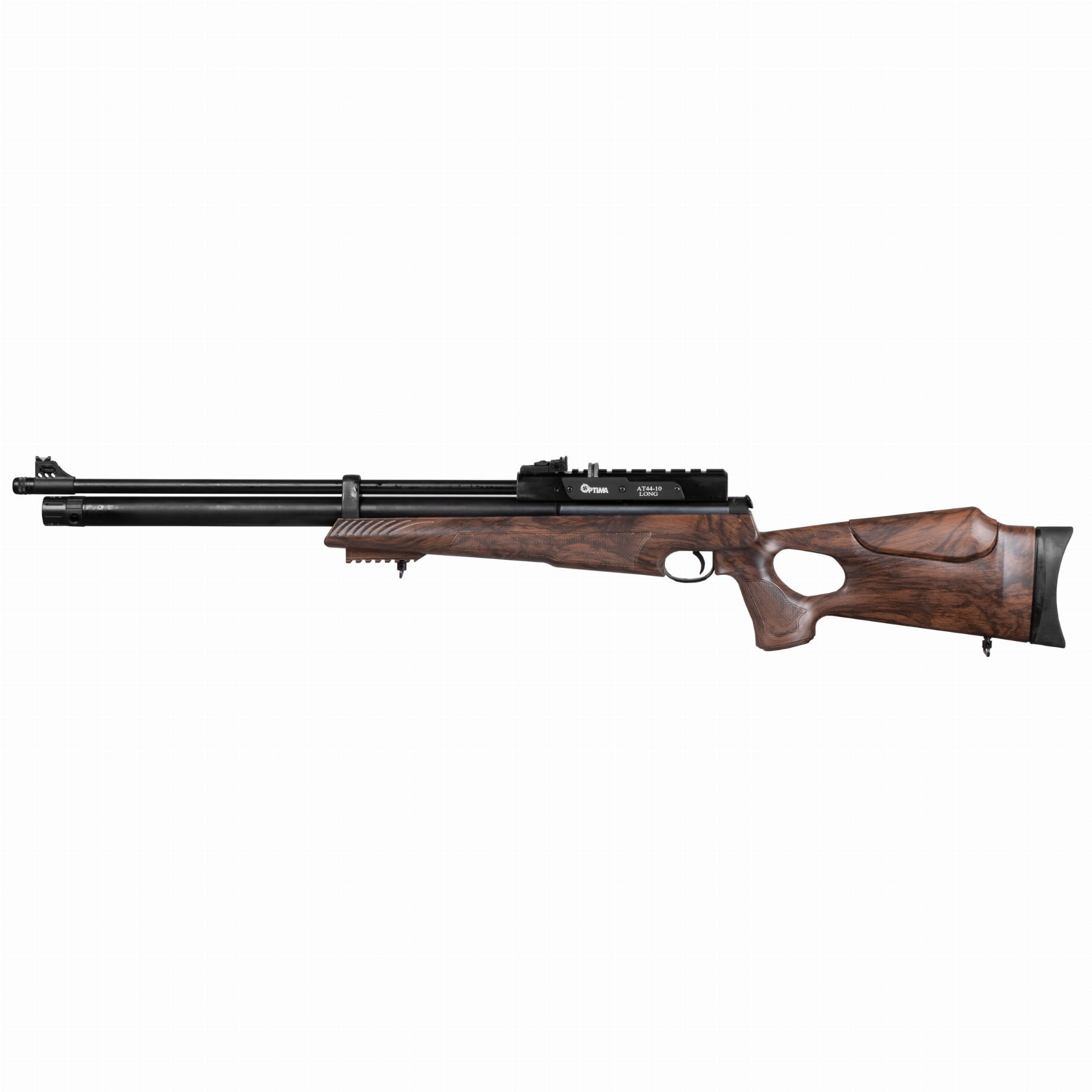 Wiatrówka PCP Optima by Hatsan AT44-10 long MW 5,5 mm to bezodrzutowy karabinek pcp, z drewnianą osadą thumbhole, 2-stopniowym mechanizmem spustowym oraz precyzyjną czokowaną ceniony przez strzelców za precyzję, wydajność oraz duże możliwości tuningu.