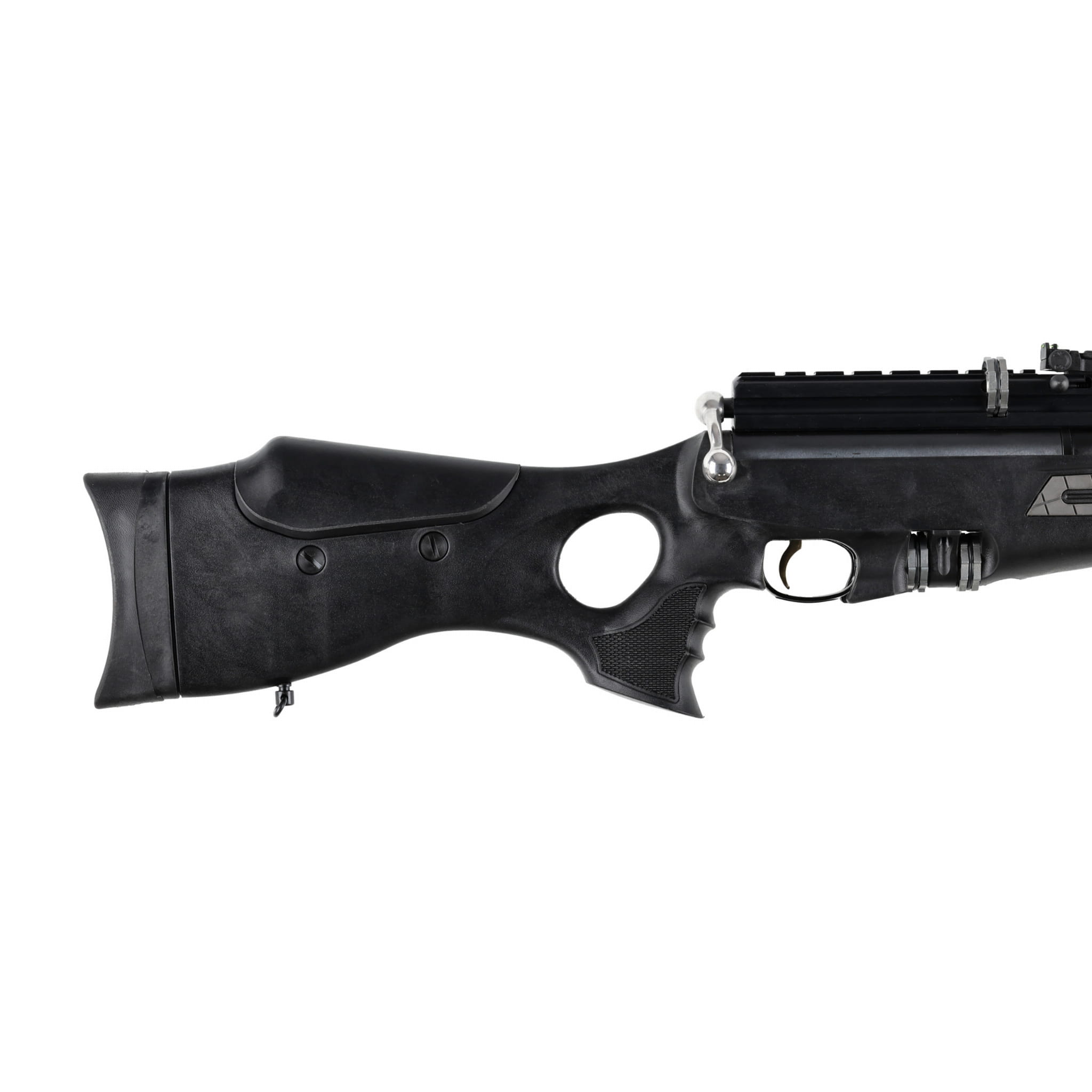 Wysoką celność wiatrówka zawdzięcza m.in. zastosowaniu dwustopniowego spustu Quattro Trigger z regulacją w 3 zakresach. Użytkownik może samodzielnie zdefiniować długość pierwszej i drugiej drogi oraz ciężar spustu, dlatego już po krótkim treningu strzeleckim możemy uzyskać ciasne i satysfakcjonujące skupienie na tarczy. Karabinek ma 2 mechanizmy odpowiedzialne za bezpieczeństwo użytkowania: Anti-Knock System-mechanizm zapobiegający niekontrolowanemu wystrzałowi w razie upadku lub dużego wstrząsu karabinka oraz bezpiecznik manualny umieszczony nad spustem.