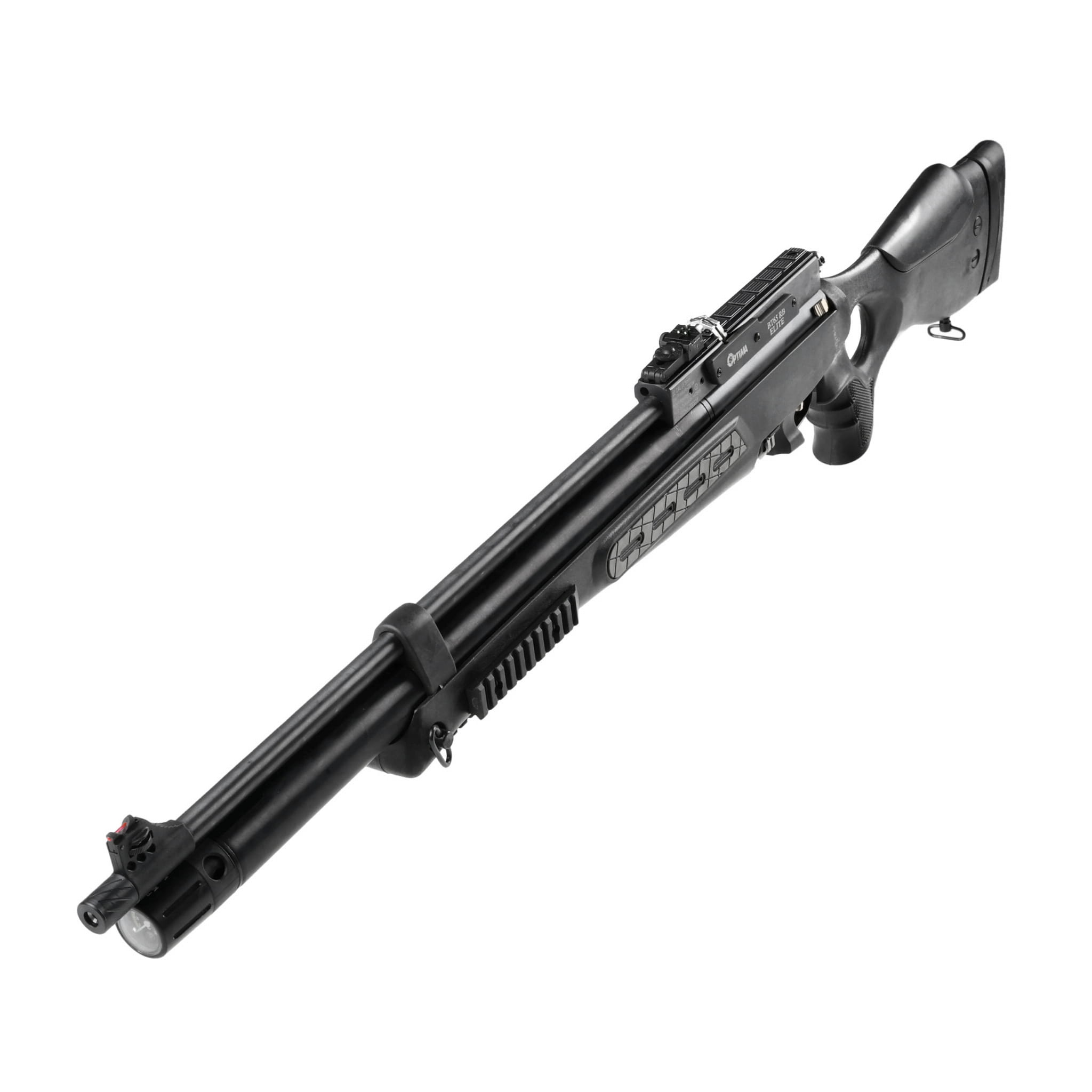 Wiatrówka PCP Optima by Hatsan BT65 RB Elite 6,35 mm to bezodrzutowy karabinek pcp, z lekkim polimerowym łożem oraz czokowaną lufą, ceniony przez strzelców za precyzję, wydajność oraz duże możliwości tuningu.