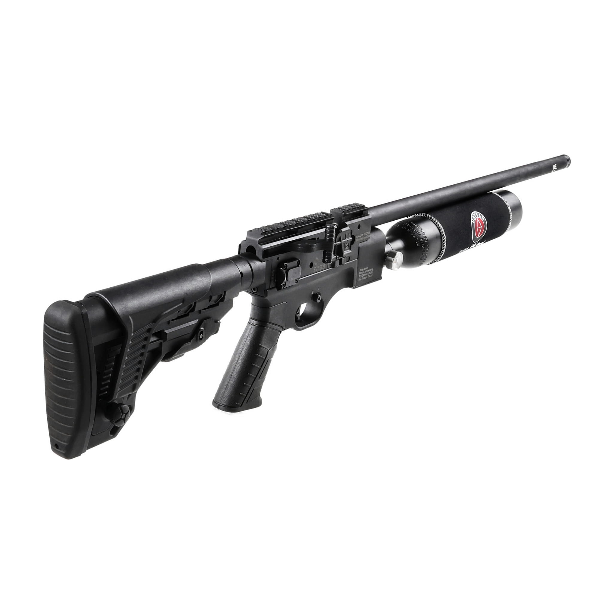 Optima by Hatsan Factor 4,5 mm to karabinek PCP w militarnym stylu, wyposażony w precyzyjną czokowaną lufę, taktyczną kolbę z regulowaną stopką oraz 2-stopniowy mechanizm spustowy z regulacją języka spustowego.