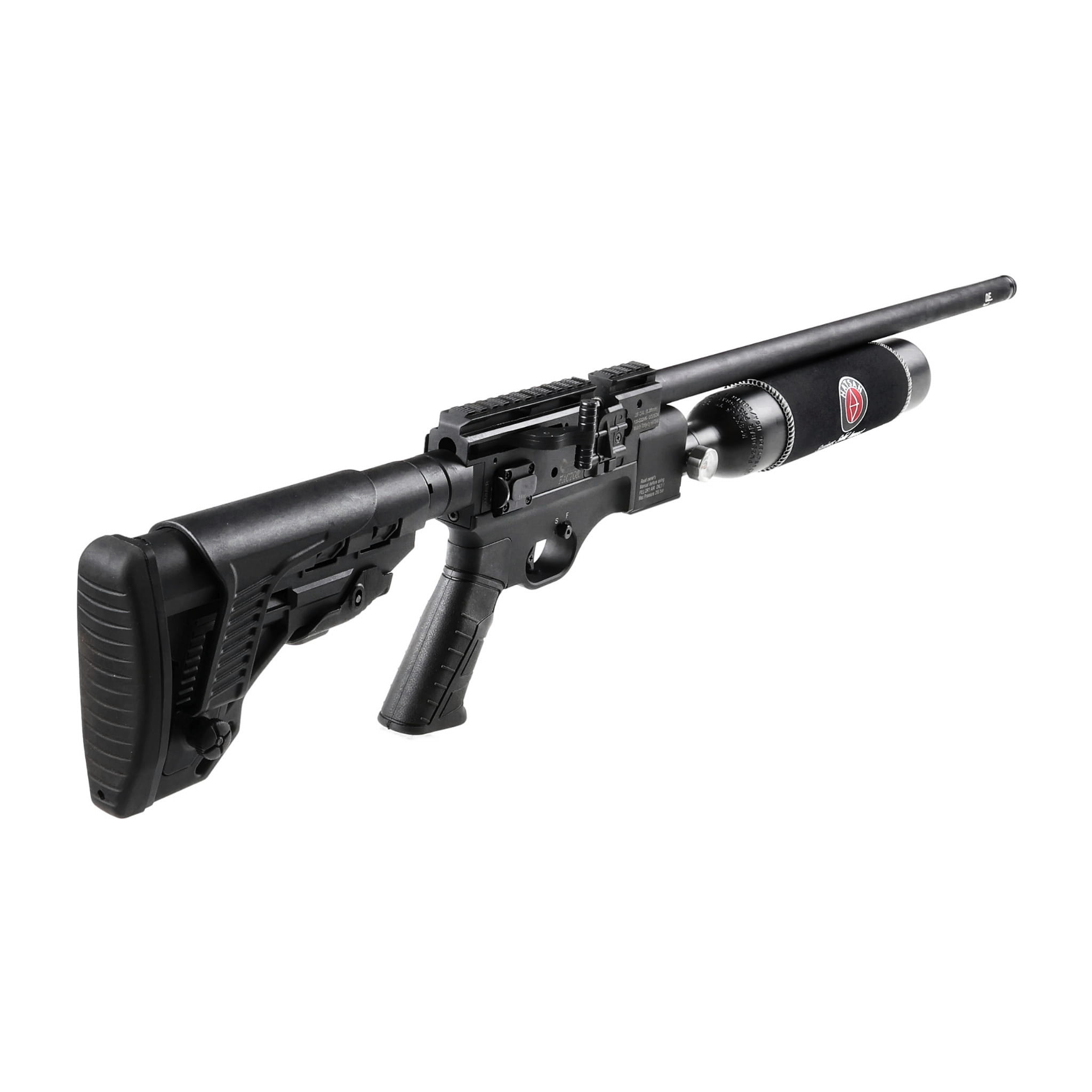 Optima by Hatsan Factor 6,35 mm to karabinek PCP w militarnym stylu, wyposażony w precyzyjną czokowaną lufę, taktyczną kolbę z regulowaną stopką oraz 2-stopniowy mechanizm spustowy z regulacją języka spustowego.