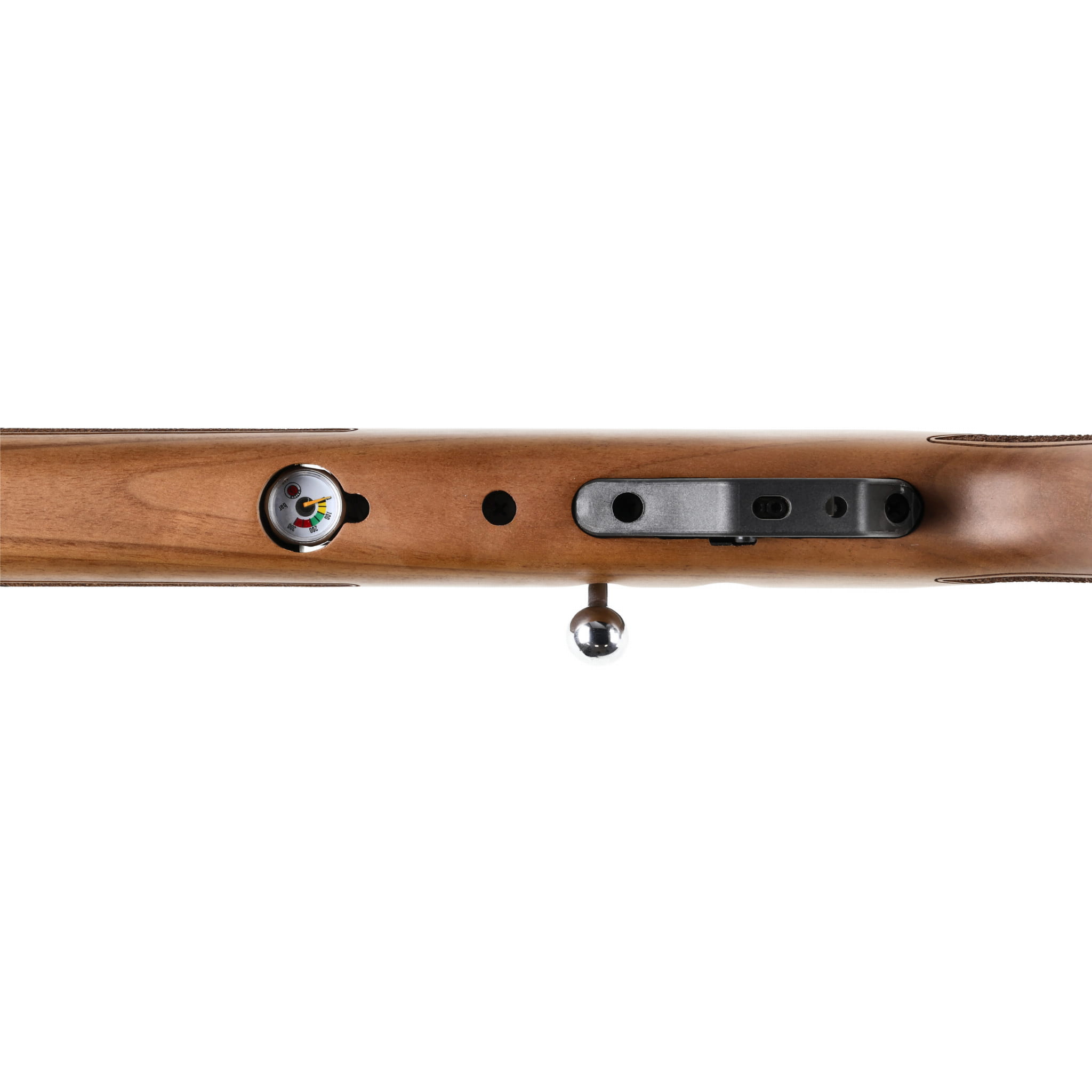 Do zasilania Optima by Hatsan Hydra 4,5 mm zastosowano stalowy kartusz na sprężone powietrze o pojemności 165 cc. Naładowany do pełna zasobnik hp pozwala na oddanie ok. 48 strzałów o powtarzalnej prędkości początkowej. Dzięki wbudowanemu manometrowi użytkownik może w łatwy sposób kontrolować ciśnienie i pozostały zapas powietrza.