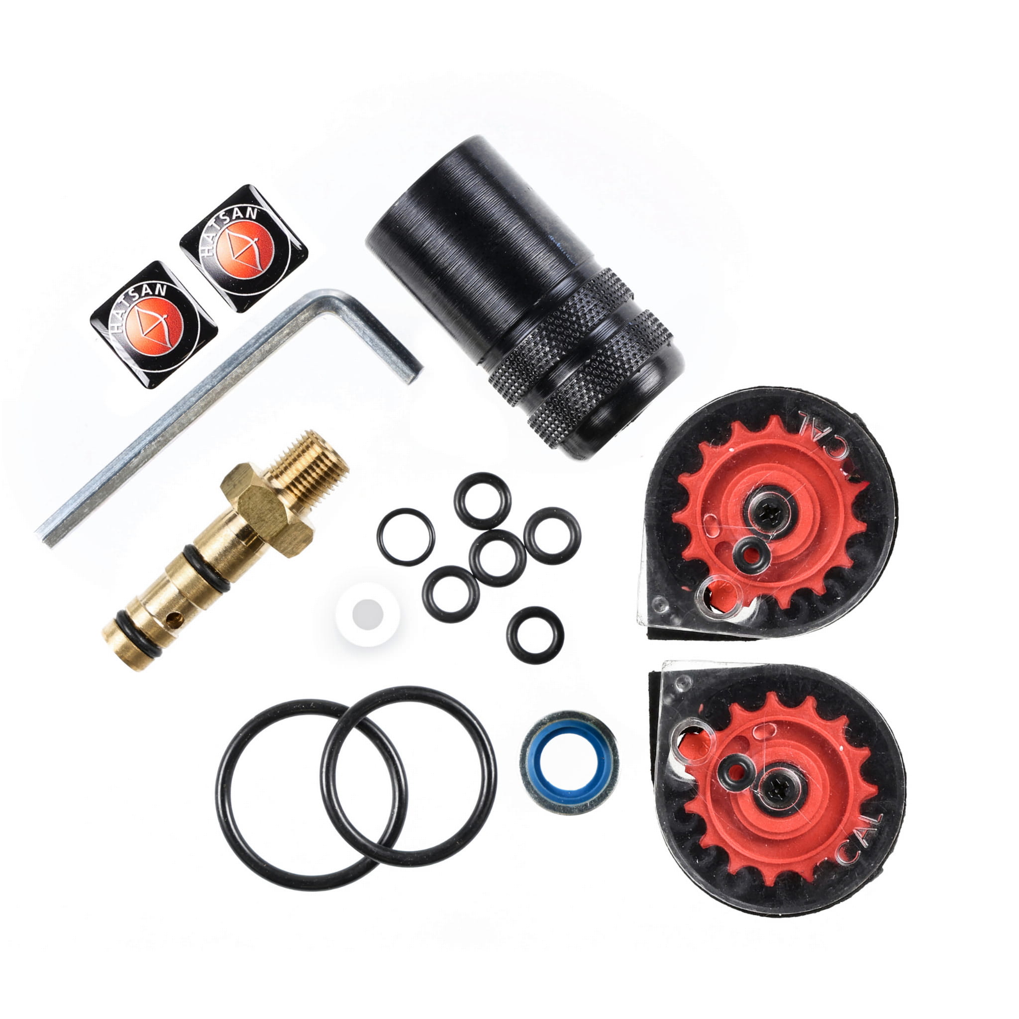 W zestawie wraz z karabinkiem otrzymujemy zestaw akcesoriów: trzy 14-strzałowe magazynki, wtyk ładowania Quick-Fill, korek do spuszczania powietrza oraz zapasowe uszczelki.