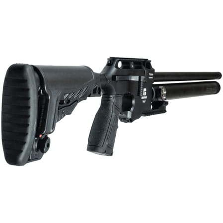 Reximex Force1, nowoczesna wiatrówka PCP w praktycznej osadzie taktycznej z chwytem pistoletowym i w pełni regulowaną kolbą. Dzięki teleskopowej kolbie oraz ruchomej stopce i bace policzkowej można wiatrówkę w pełni dostosować do swoich preferencji. Force1 wyposażono w dźwignię przeładowania Side Lever, podwójną szynę na optykę 11 i 22 mm, język spustowy o regulowanej twardości. Dostępny w kalibrach: .177 (4.5 mm), .22 (5.5 mm), .25 (6.35 mm).