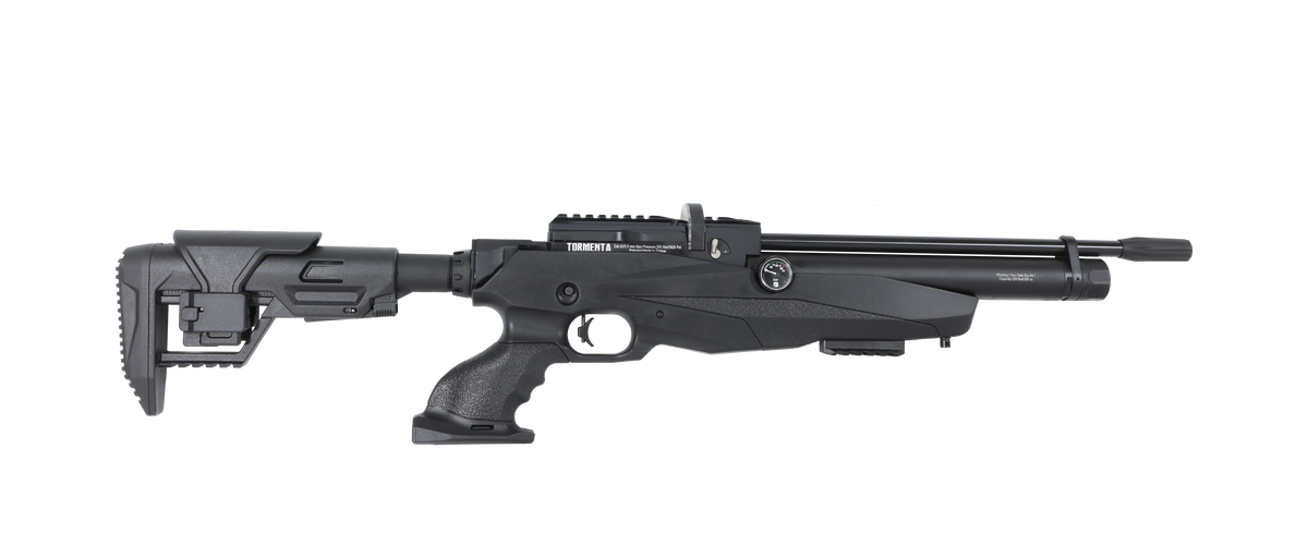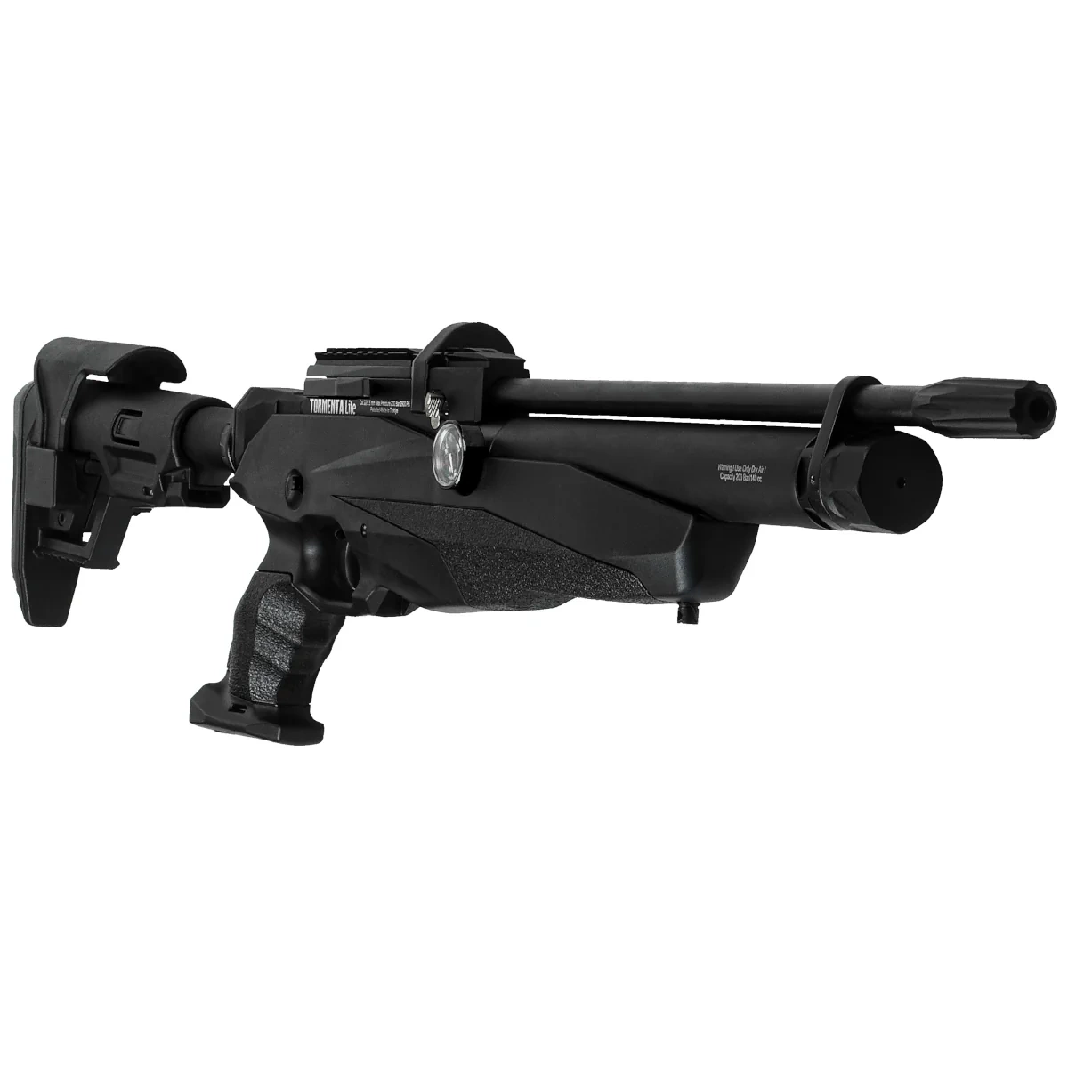 Reximex Tormenta Lite, nowoczesna wiatrówka PCP w kompaktowej, taktycznej osadzie z chwytem pistoletowym wykonanej z wytrzymałego polimeru. To nowa odsłona popularnej serii wiatrówek Tormenta dostępna w jeszcze przystępniejszej cenie, z taktyczną teleskopową kolbą w systemie AR z regulowaną baką policzkową. Karabin wyposażony został w dźwignię napinania Side Lever, lekki aluminiowy kartusz, gwintowaną lufę. Dostępny w kalibrach: .177 (4.5 mm), .22 (5.5 mm), .25 (6.35 mm).