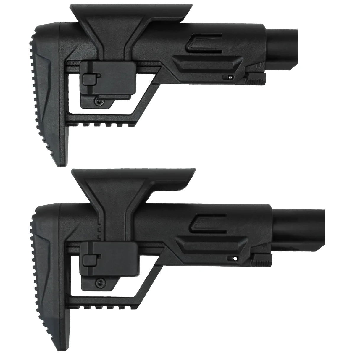 Osada - kompaktowa, taktyczna z wygodnym chwytem pistoletowym oraz teleskopową kolbą w systemie AR z regulowaną baką policzkową. Zakończona gumową stopką absorbującą odrzut. Wyposażona w bączki do zamocowania pasa nośnego oraz schowek na zapasowy magazynek. Ryflowanie oraz ergonomiczne żłobienia gwarantują pewny chwyt wiatrówki. Łoże oraz kolba wykonane z wytrzymałego polimeru.