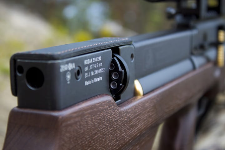 Kozak FC-2 to nowa generacja wiatrówek PCP w układzie bull-pup. Ta pneumatyczna wiatrówka kalibru 4,5 mm z symetryczną kolbą zapewnia wygodny chwyt i komfortowe strzelanie zarówno dla praworęcznych, jak i leworęcznych użytkowników. Kolba wykonana jest z drewna jesionowego/
