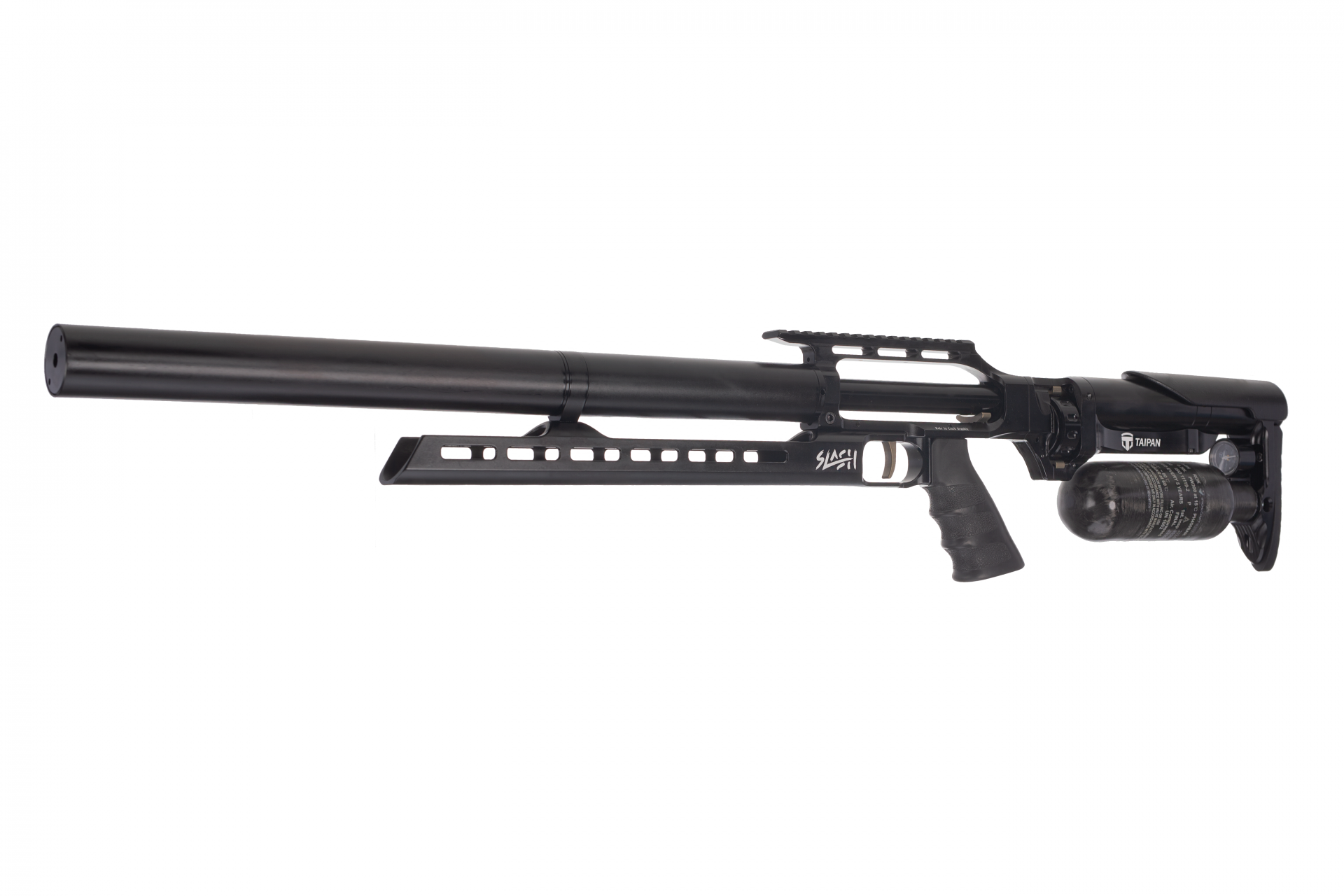 Już na pierwszy rzut oka widać, że ten bullpup nie jest kolejną kontynuacją serii Veteran. Chodzi bowiem o całkowicie nową wiatrówkę, w której nie ma żadnej części z poprzednich modeli. I właśnie dlatego konstruktorzy nadali jej zwięzłą, a zarazem trafną nazwę Taipan SLASH.