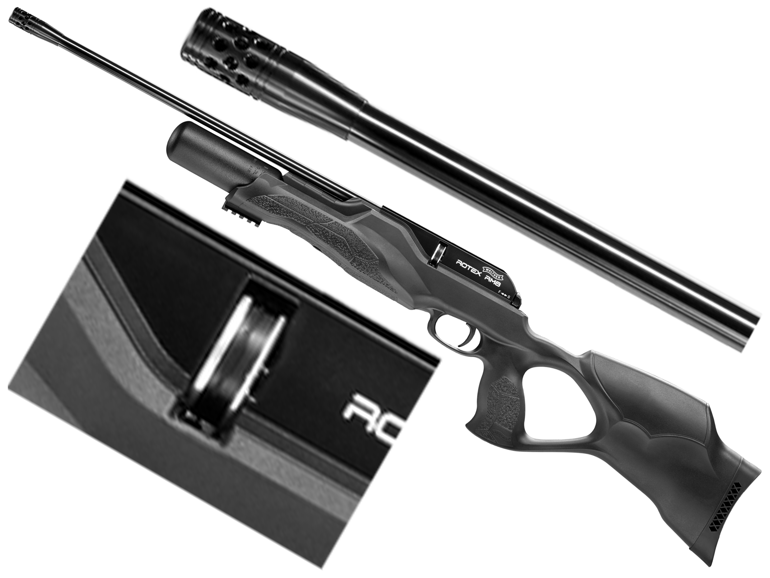 Walther Rotex RM8 Varmint 4,5 mm PCP to nowoczesny karabinek PCP, w którym zastosowano polimerową osadę thumbhole, precyzyjną lufę Lothar Walther z gwintem zewnętrznym oraz kartusz o pojemność 200 cm3 zapewniających do 110 strzałów.