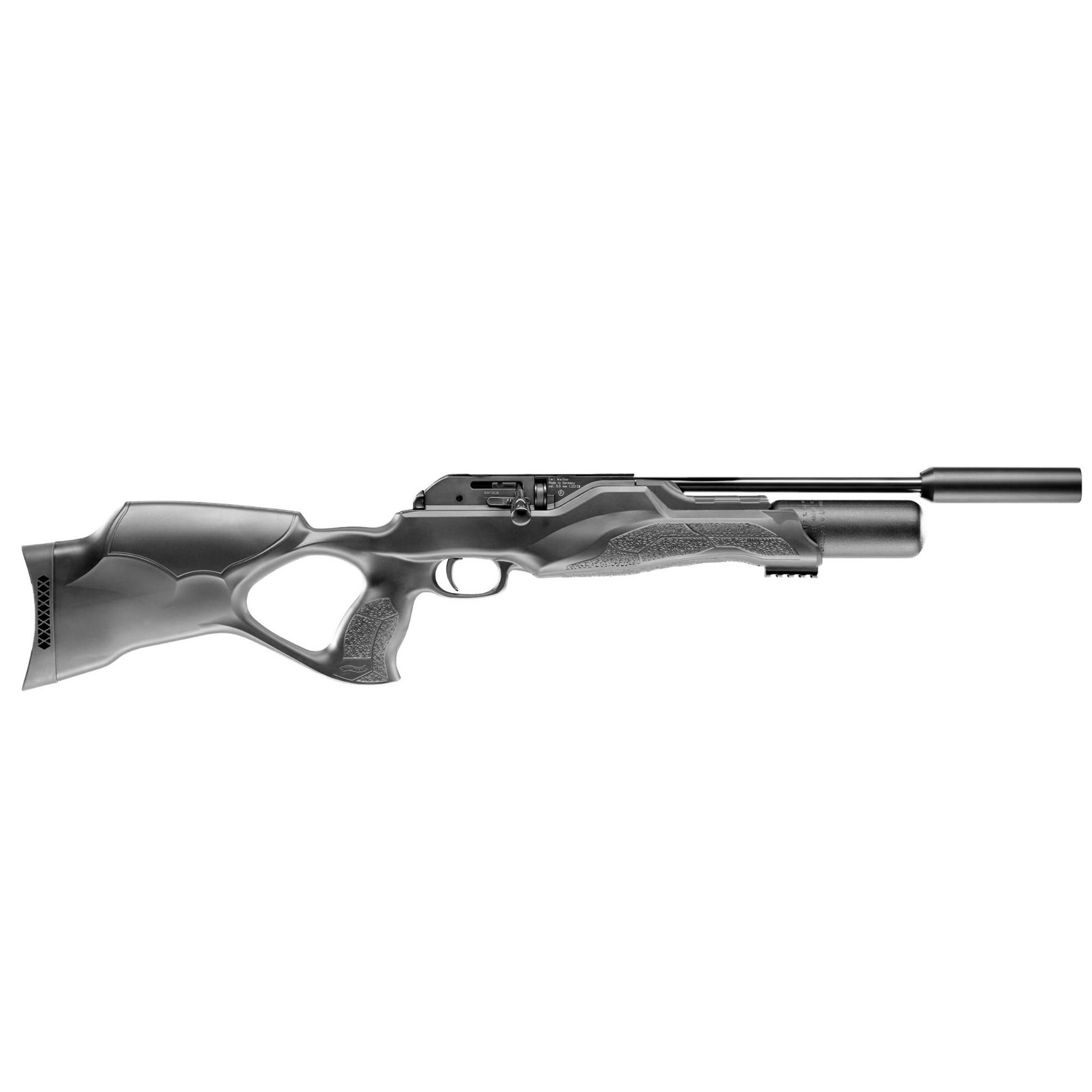 Elementem, który podkreśla nowoczesny charakter wiatrówki, jest kolba typu thumbhole, z wyodrębnionym chwytem pistoletowym i otwartą przestrzenią na kciuk. Taki typ kolby pozwala na pewniejszy chwyt karabinka, zwiększa komfort strzelania zwłaszcza w przypadku osób o małych dłoniach oraz zmniejsza ciężar wiatrówki.