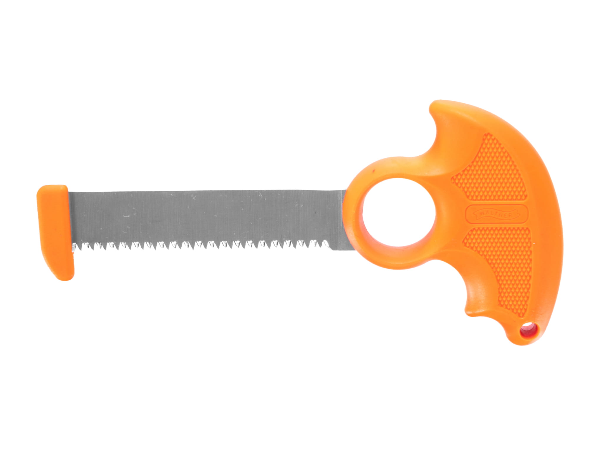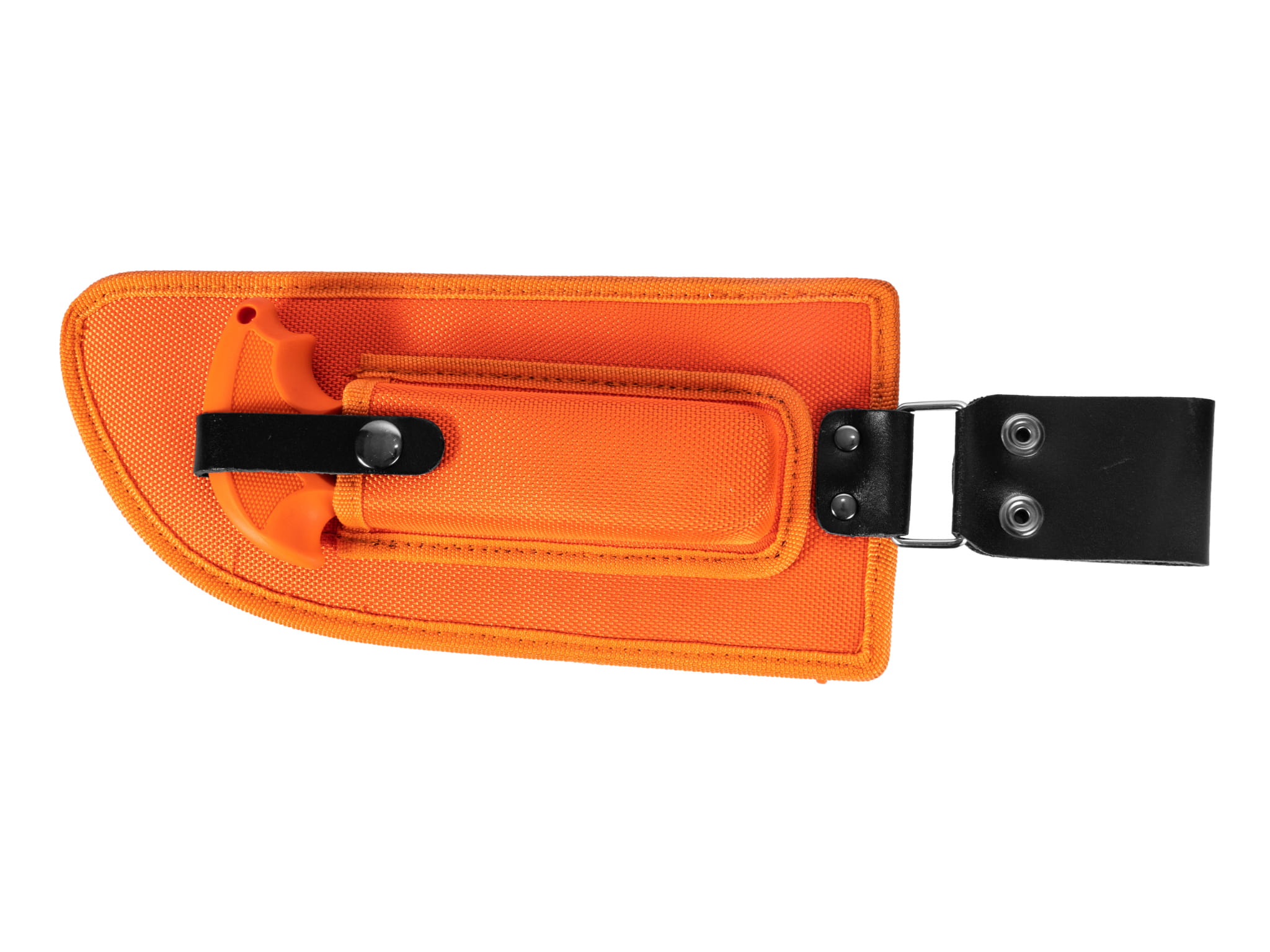 W zestawie znajdują się 3 narzędzia: poręczny nóż do patroszenia, duży nóż z hakiem do skórowania oraz kompaktowa piła do dzielenia kości.