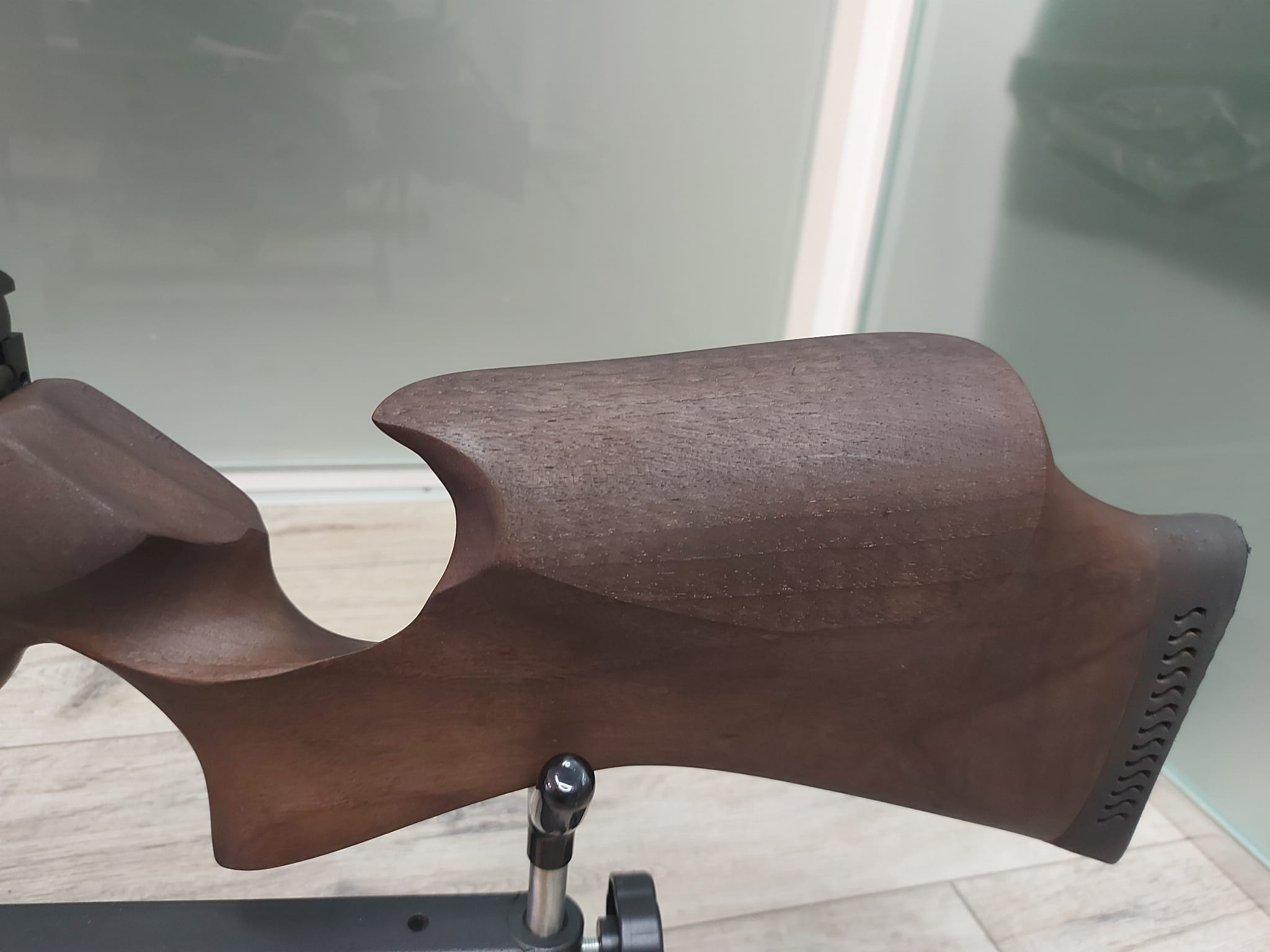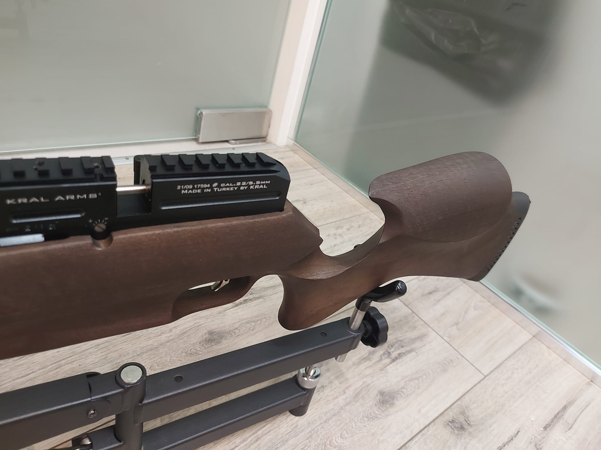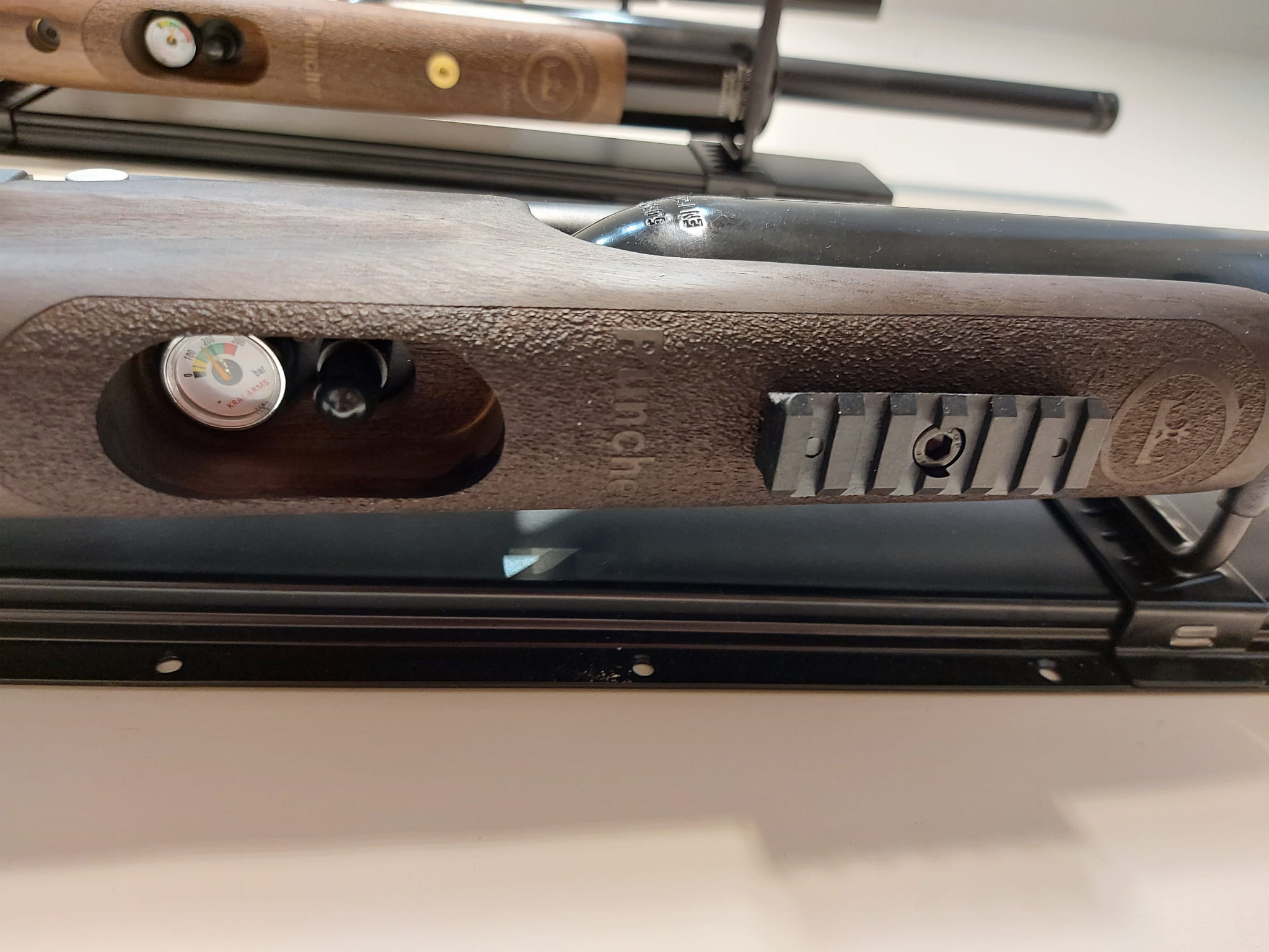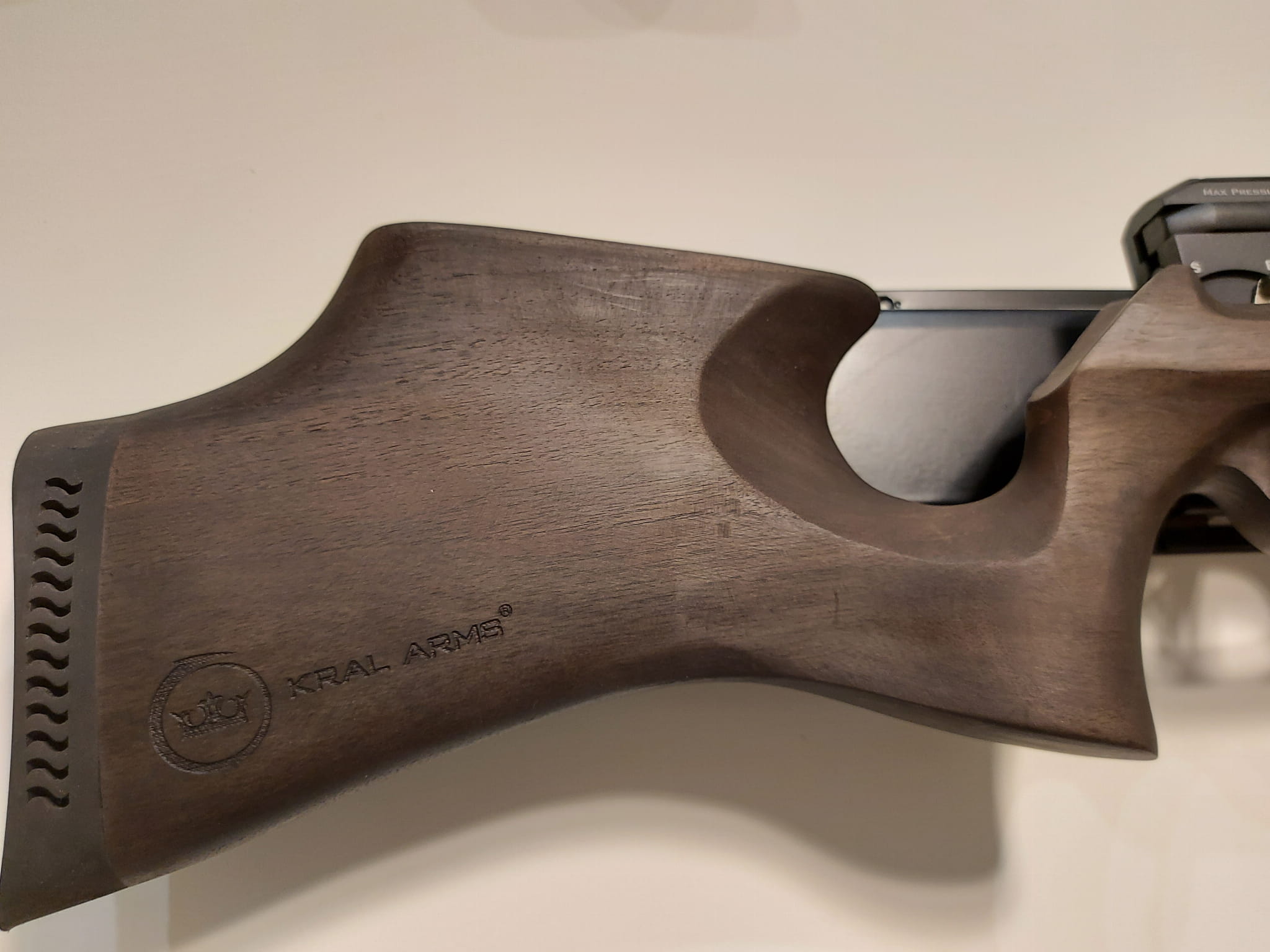 Wiatrówka Kral Arms Puncher PRO 500 punktuje łożem z tureckiego orzecha cechującym się naturalną stylistyką oraz nietypowymi kształtami. Kolba z baką policzkową typu Monte Carlo została zakończona gumową stopką, która skutecznie niweluje wstrząsy podczas strzelania. Dolna strona łoża jest moletowana, przez co wiatrówka pewnie leży w dłoni, nie ślizgając się.