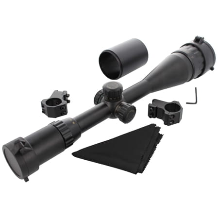 Vogler 6-24x50 AOEG to budżetowy celownik optyczny wyposażony w podświetlaną siatkę celowniczą, regulację paralaksy, osłonę przeciwsłoneczną oraz dwuczęściowy montaż na szynę 11 mm.