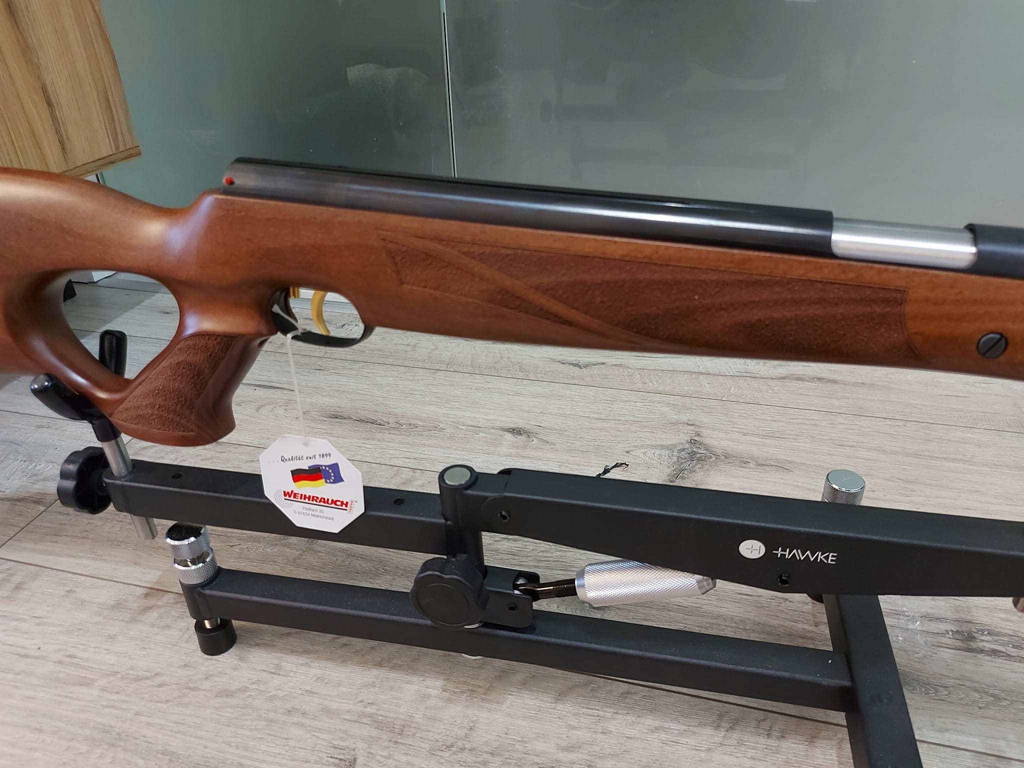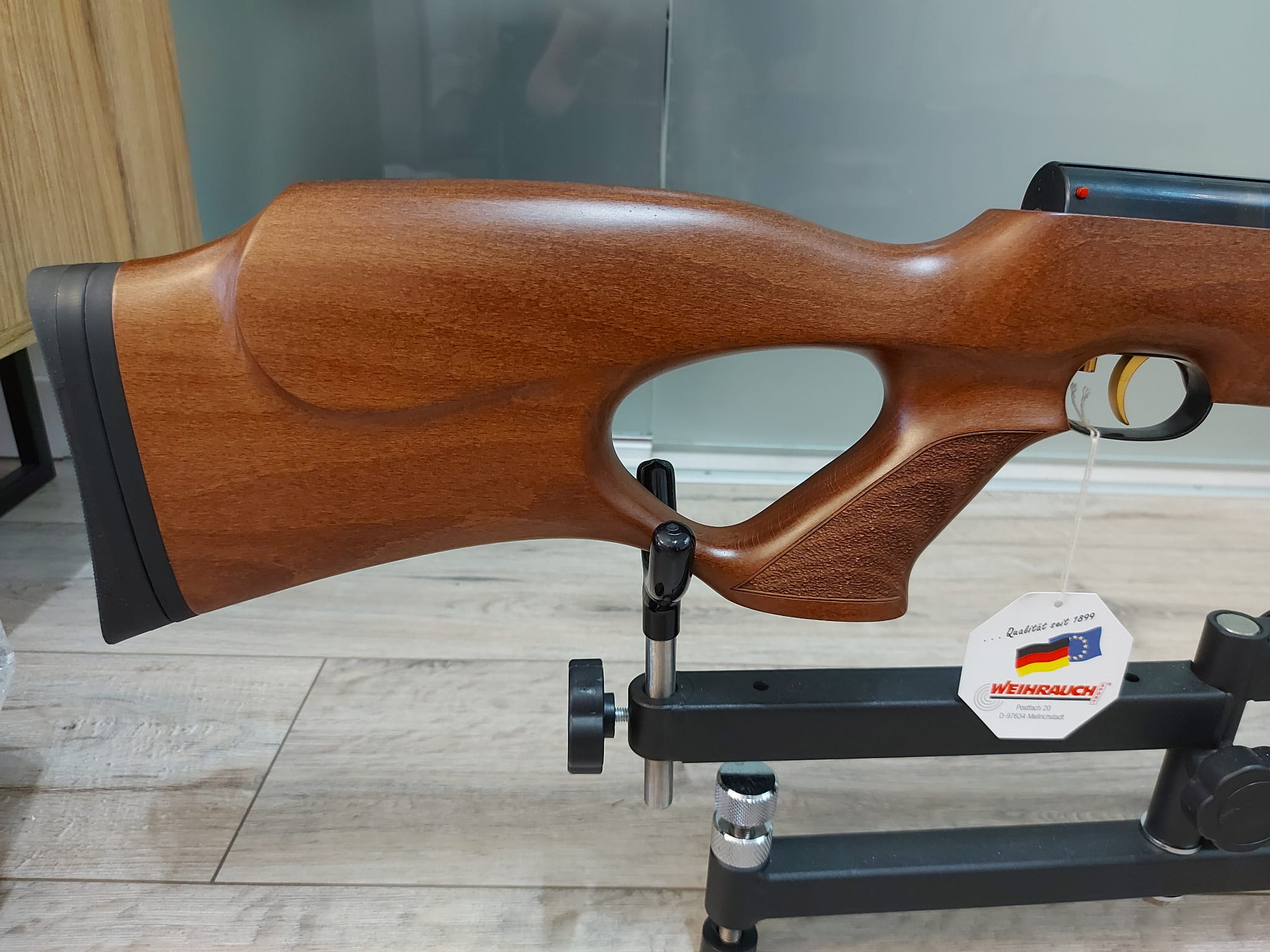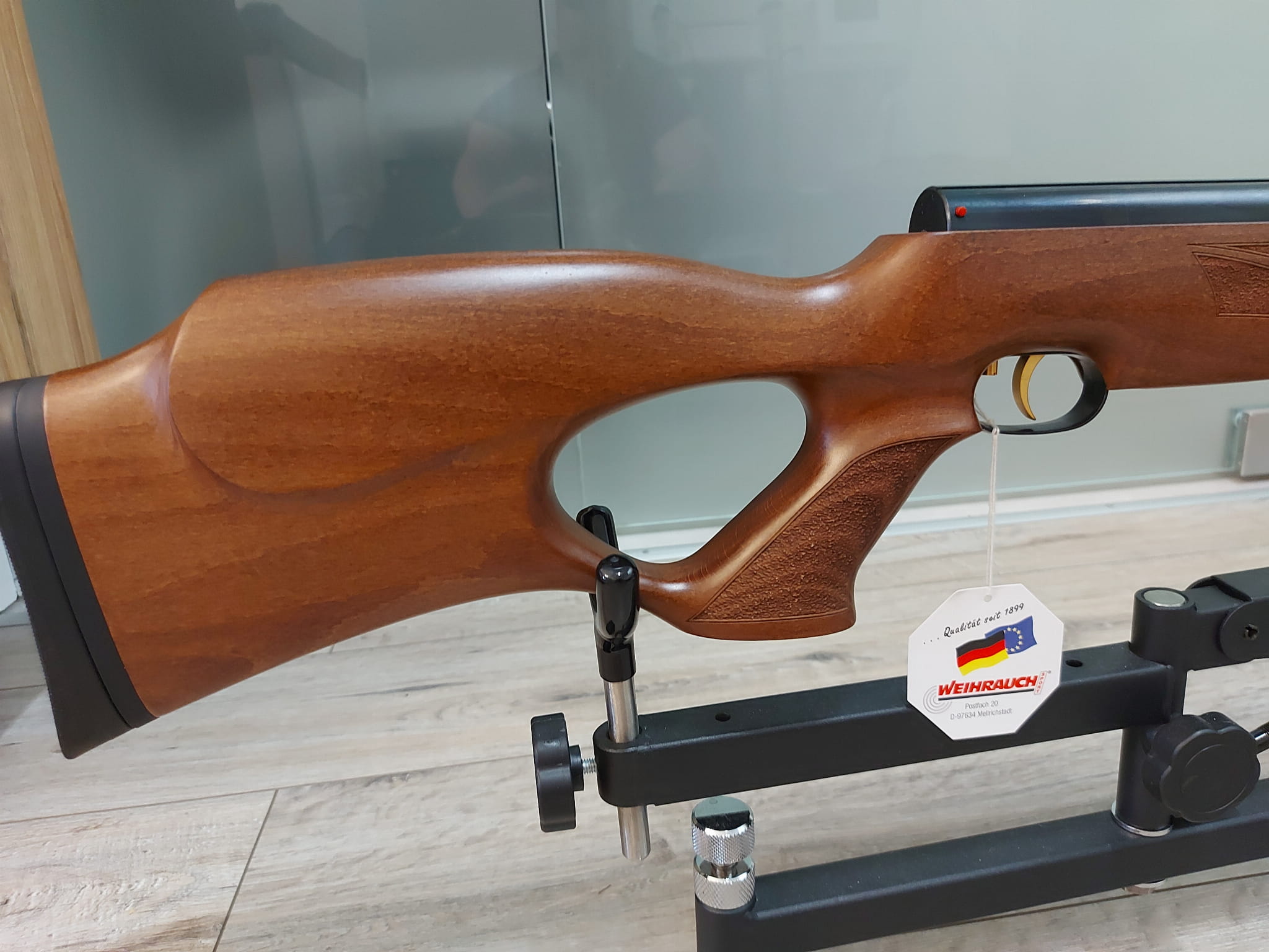 Wiatrówka, karabinek sportowy w kalibrze 4,5mm firmy Weihrauch to wieloletnia tradycja i klasa sama w sobie. Karabinek świetnie nadaje się do zawodów w konkurencji HFT (Hunter Field Target) jest to precyzyjne strzelectwo do figurek na różnych dystansach, wielokrotnie tym karabinkiem wygrywano mistrzostwa świata w konkurencji HFT, jak również świetnie się sprawdza do dyscyplin tarczowych, precyzyjnych jak strzelanie ze stolika zwane Benchrest. Ergonomiczna osada zapewnia wygodę podczas strzelania.