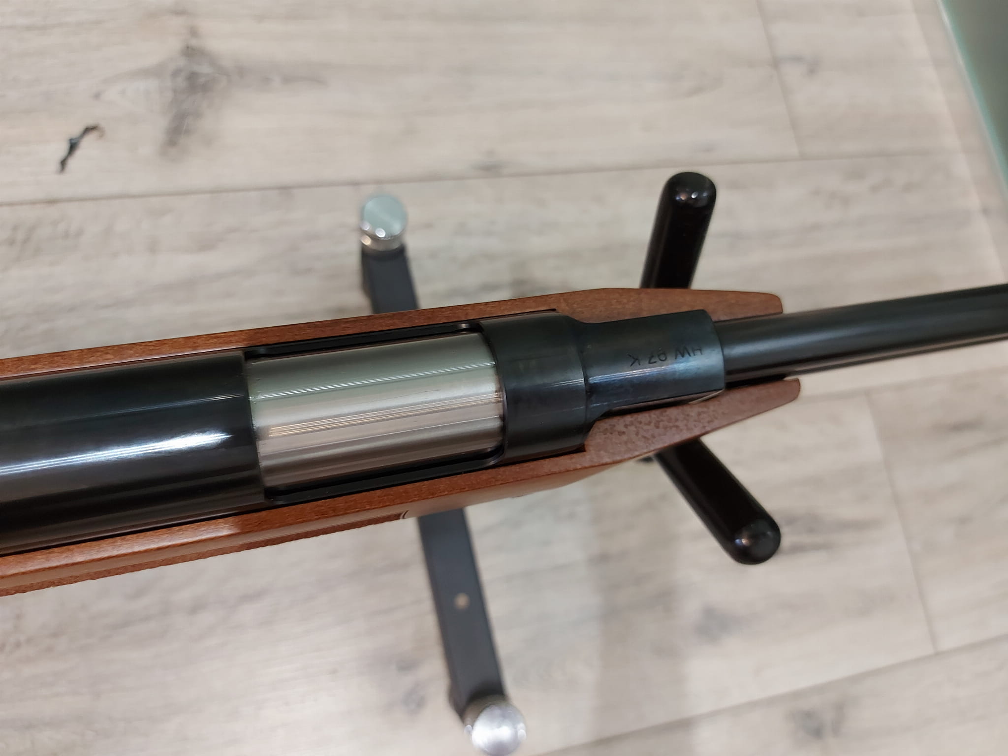 Model HW 97K na końcu lufy wyposażony został w kompensator dociążający lufę. Karabinek posiada także regulowany aluminiową śrubą spust, którego regulacja pozwala na dowolne ustawienie siły nacisku.